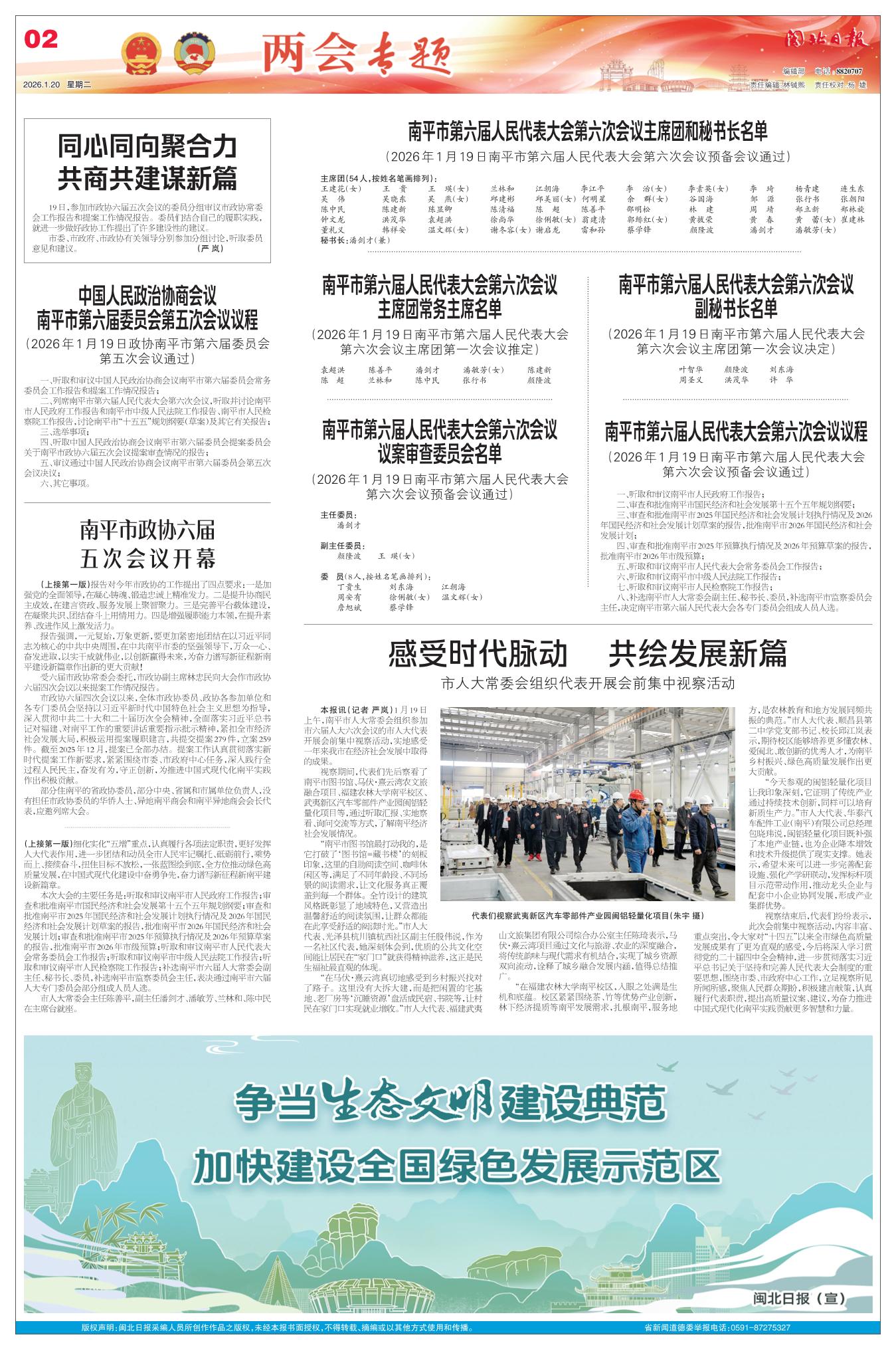 南平市第六届人民代表大会第六次会议议程