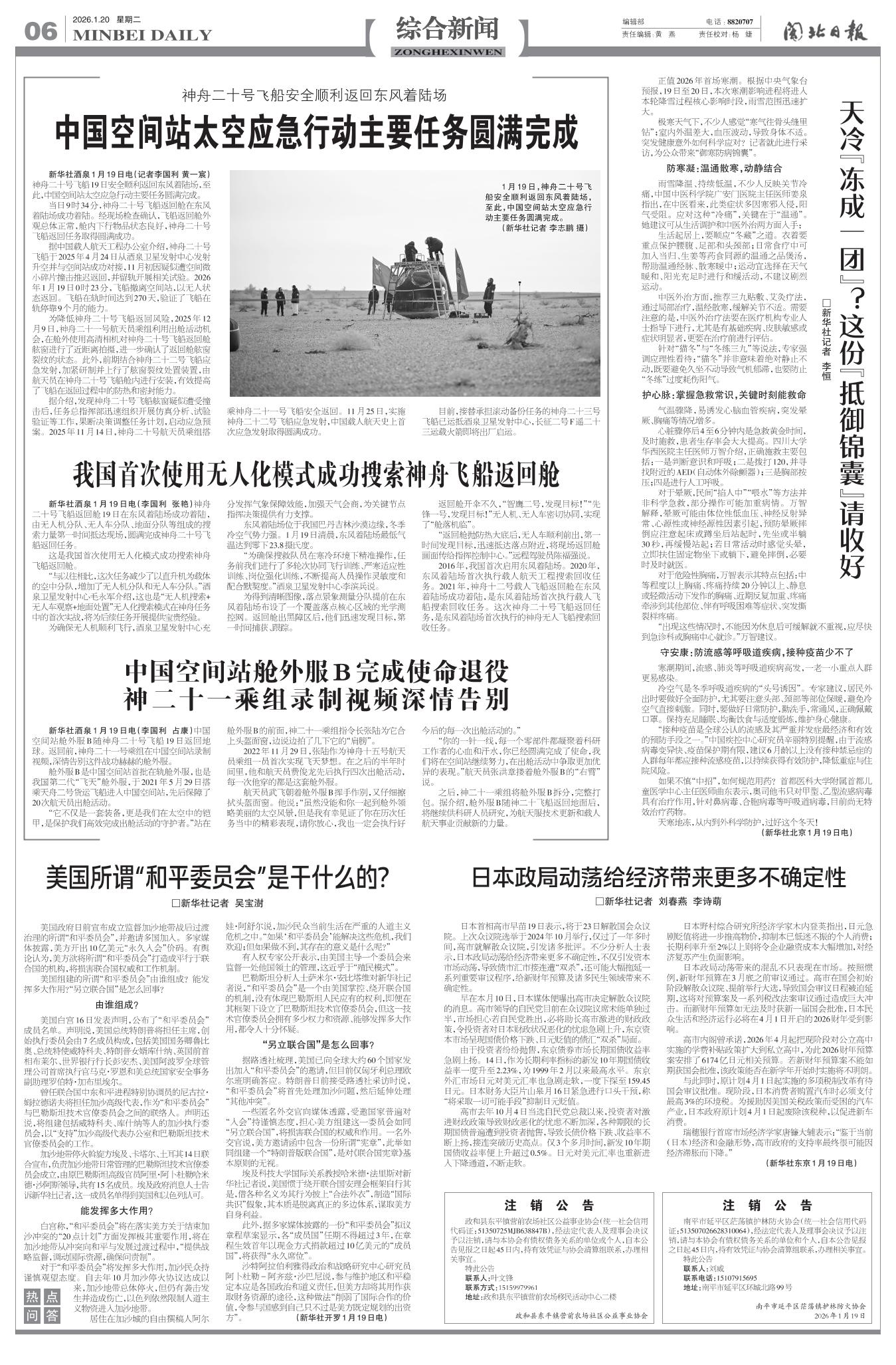 中国空间站太空应急行动主要任务圆满完成