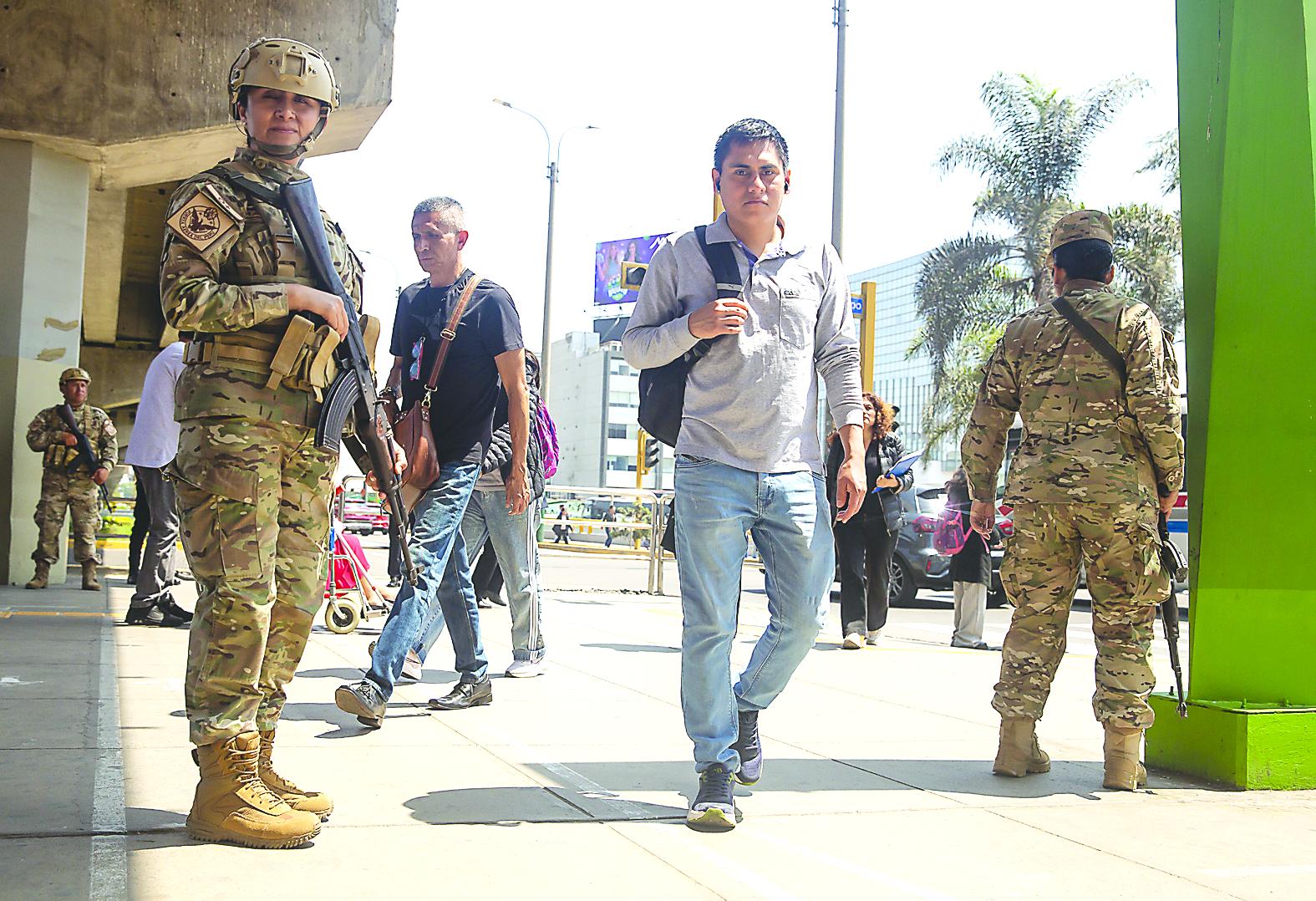 10月22日,在秘鲁首都利马,军人正在巡逻。