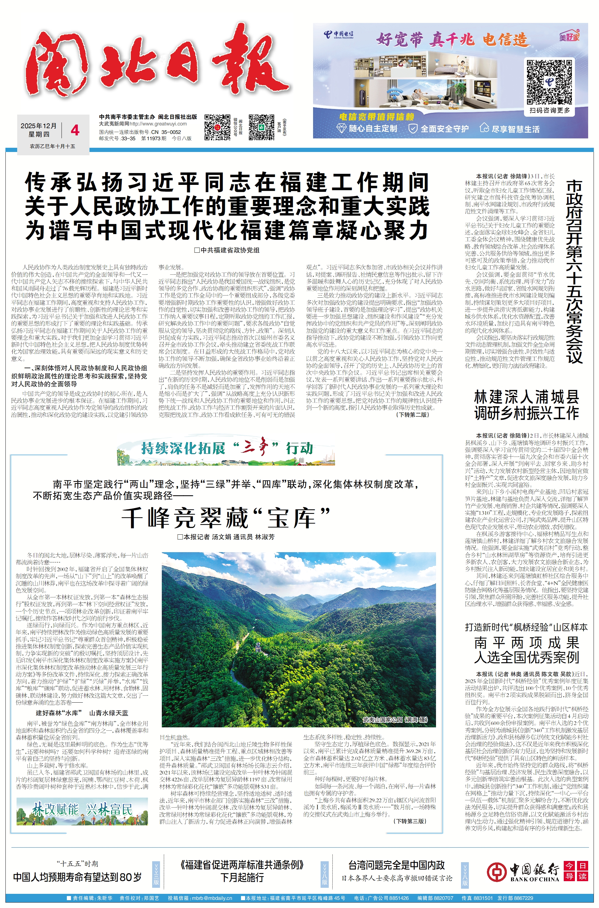 本报讯(记者 徐陆锋)2日,市长林建深入浦城县枫溪乡、山下乡、莲塘镇等地调研乡村振兴工作,强调要深入学习宣传贯彻党的二十届四中全会精神,贯彻落实省委十一届九次全会和市委六届十次全会部署,深入开展“到南平去、回家乡来、助乡村兴”活动,大力发展农村新型经营主体,因地制宜做好“土特产”文章,促进农文旅深度融合发展,助力乡村全面振兴、实现共同富裕。