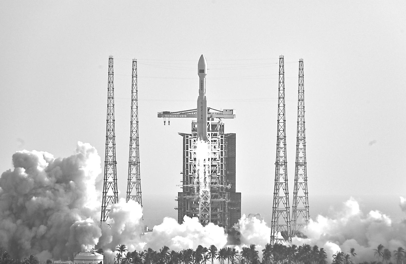 12月6日15时53分,我国在海南商业航天发射场使用长征八号甲运载火箭,成功将卫星互联网低轨14组卫星发射升空,卫星顺利进入预定轨道,发射任务获得圆满成功。 (新华社记者 郭程 摄)