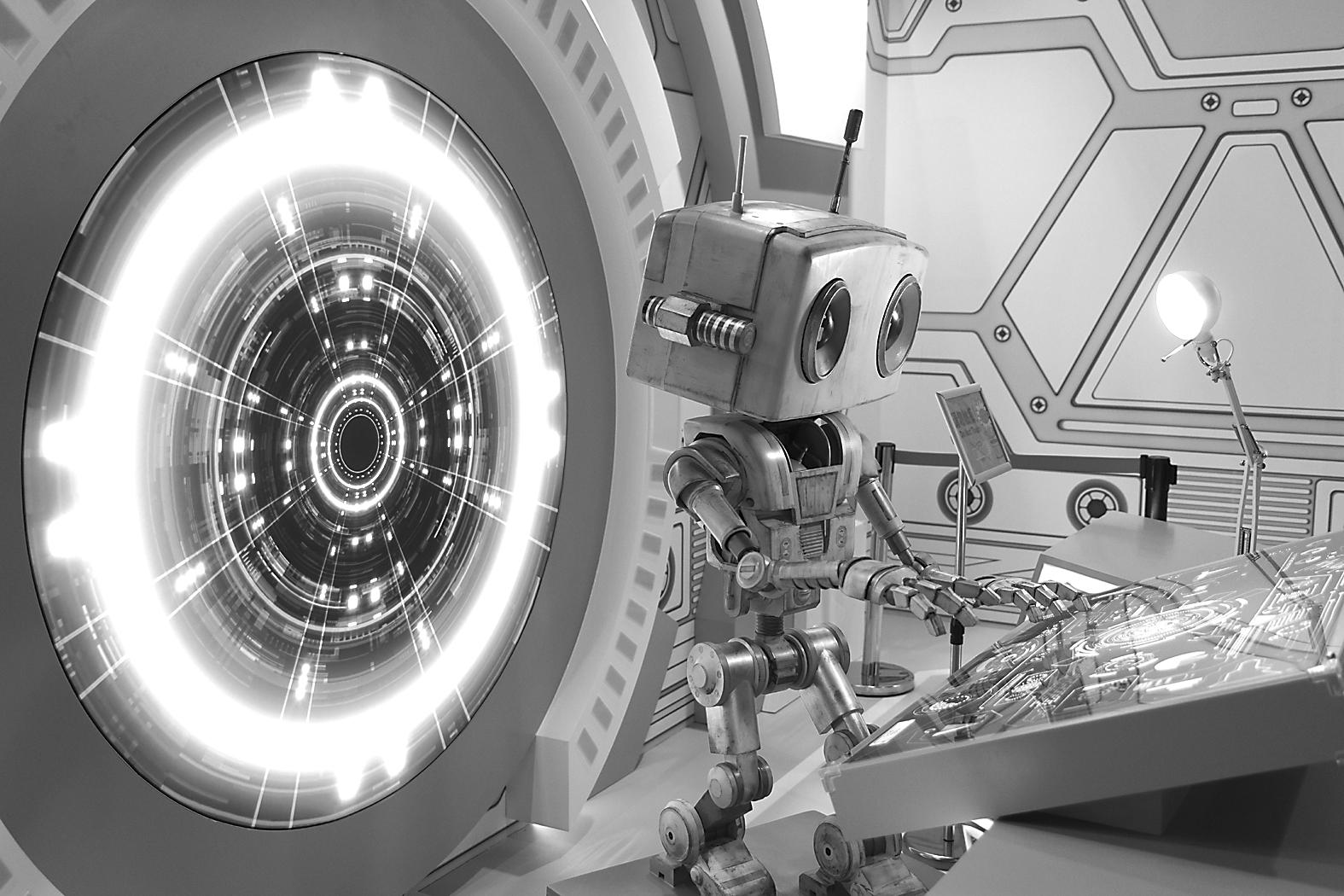 2025年6月28日在中国科学技术馆《Project X:星际友好计划》航天科幻扩展现实(XR)大空间体验展拍摄的人工智能机器人星启8号。