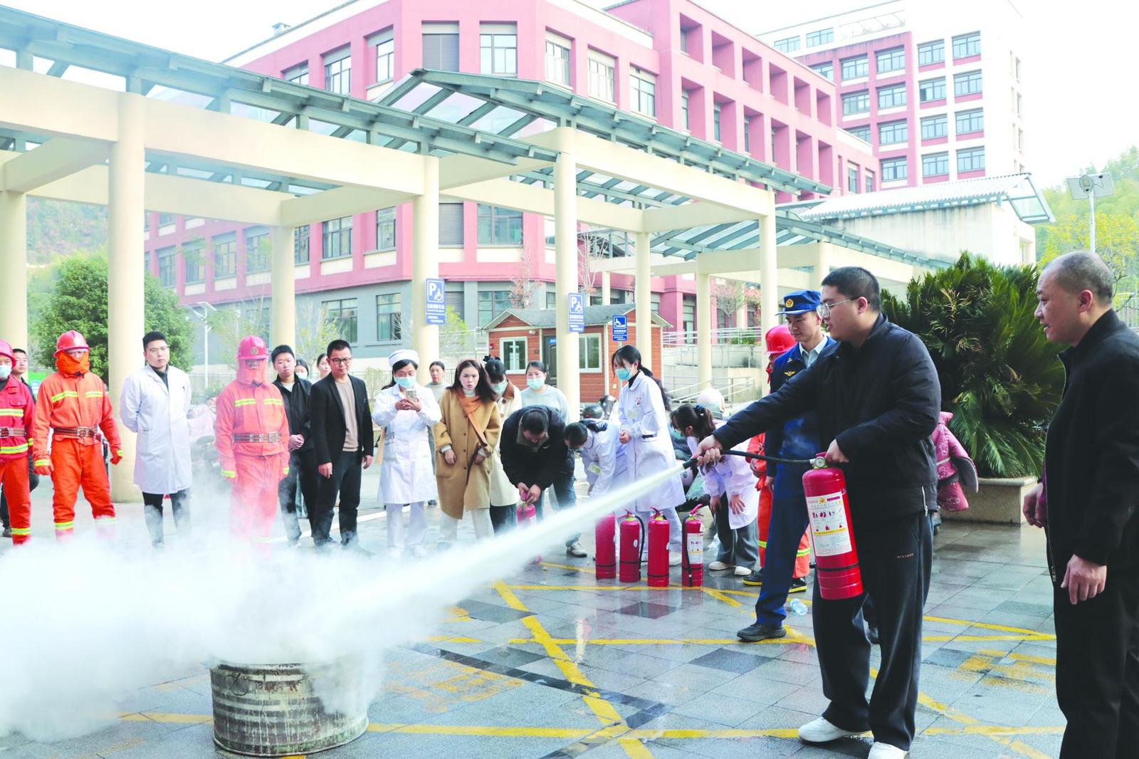 12月10日,光泽县消防救援大队联合县卫健局举行卫健系统消防安全专题培训,县医院及各乡镇卫生院相关人员参加培训。培训以理论与实操相结合的方式开展。图为灭火器使用实操演练现场。 (陈芳芳 摄)
