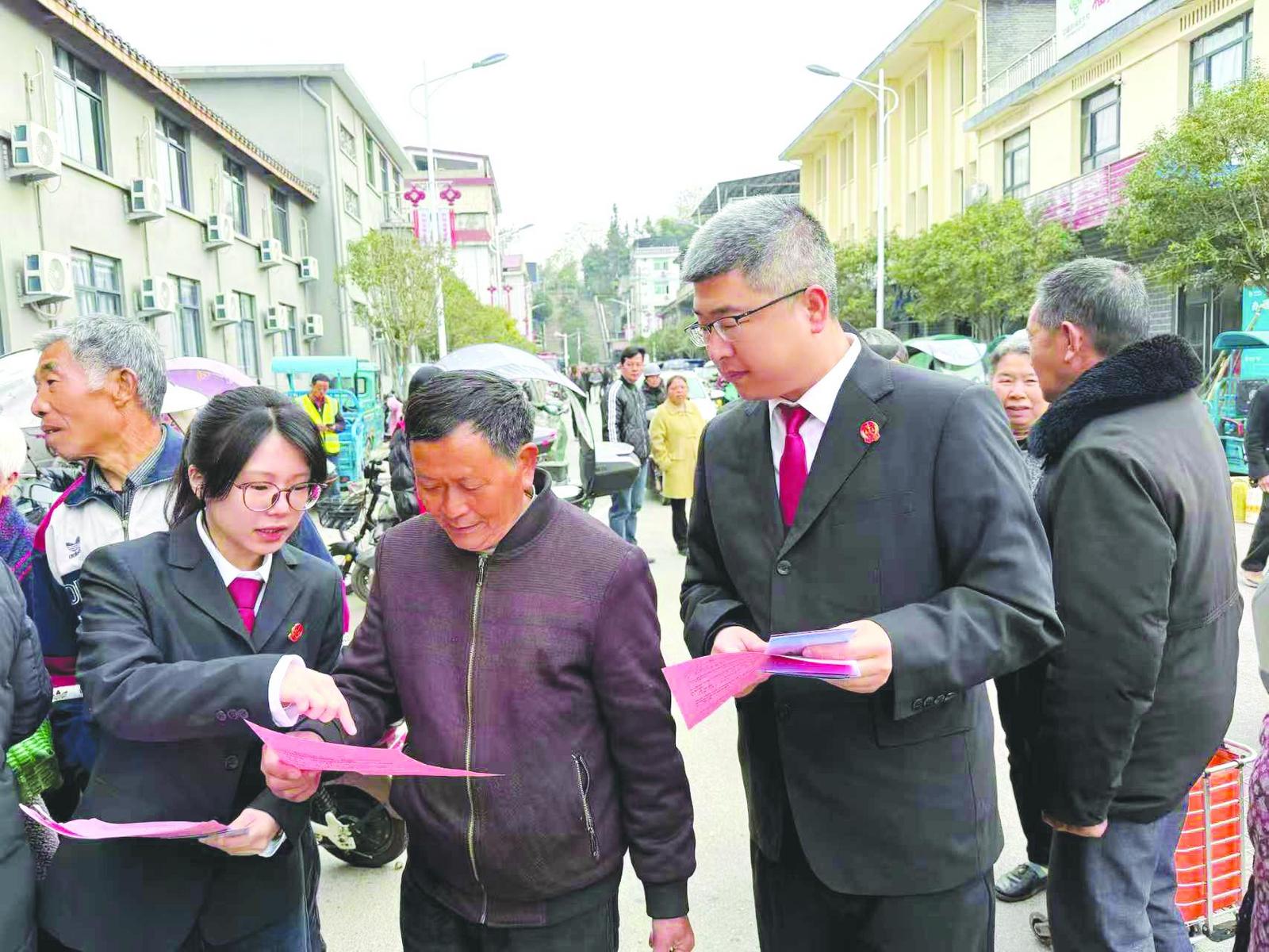 为进一步提升群众对平安建设的知晓率、参与率和满意率,日前,建阳区法院麻沙法庭干警走进书坊乡,开展“平安三率”主题宣传活动。活动现场,干警们通过发放宣传彩页、现场答疑等方式向过往群众普及电信网络诈骗防范、邻里纠纷化解、交通安全等与日常生活息息相关的法律知识。 (谢菲 摄)