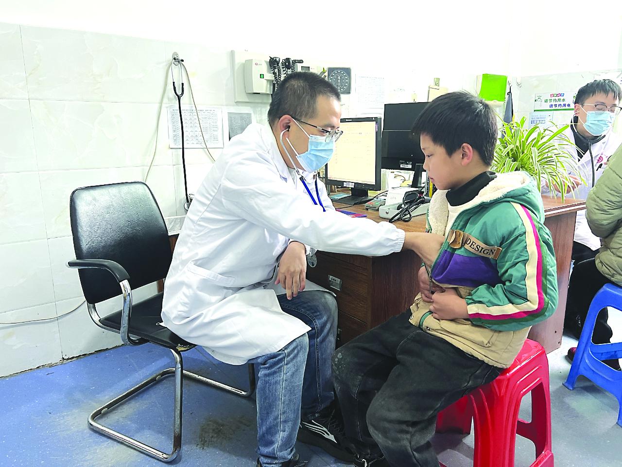 近日,建阳区总医院“4+N”全民健康医防融合网格化专家团队深入莒口镇,开展多学科联合义诊活动,将优质医疗服务送至村民家门口,让健康关怀融入乡村日常。图为儿科医生曾兴为莒口镇儿童就诊。 (刘智敏 摄)