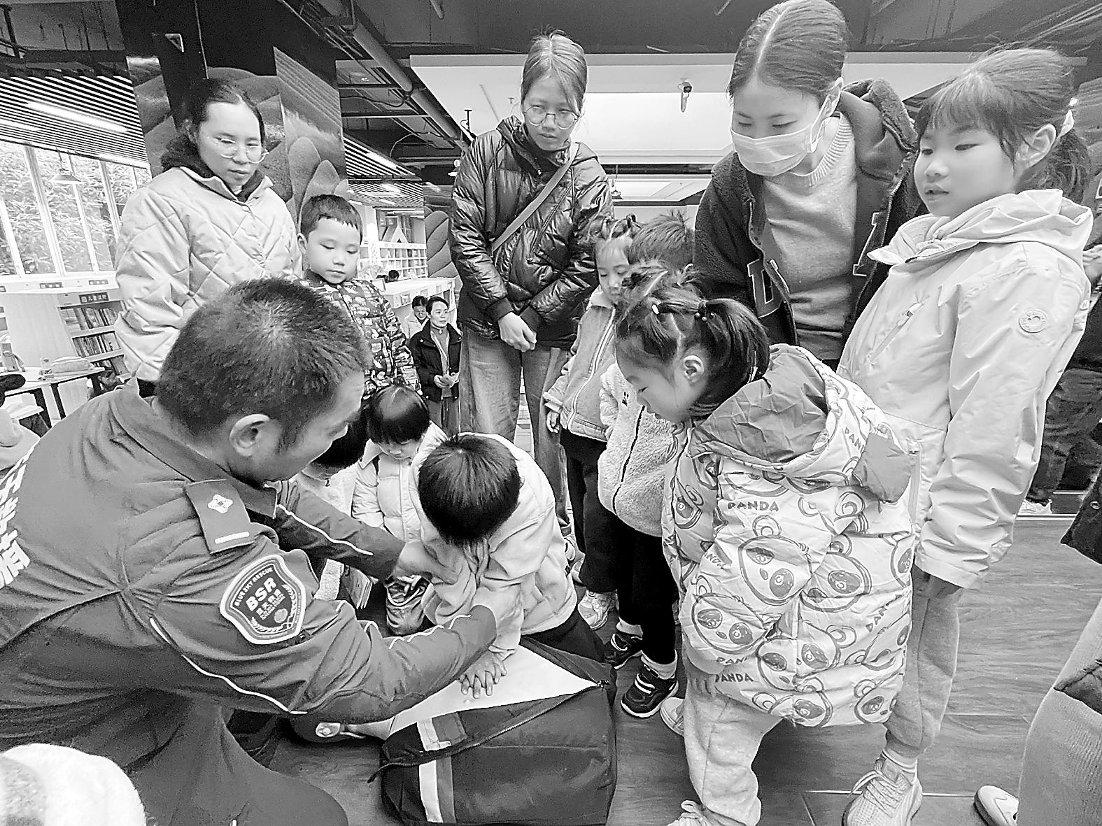 20日,闽北日报“南平发布”APP客户端运营团队携手延平区蓝天救援中心共同举办“争做安全小卫士 平安成长我能行”急救知识宣传教育活动,旨在提升青少年及其家庭的安全防护意识与应急自救能力,吸引了20余组亲子家庭积极参与。图为活动现场。(张伟 摄)