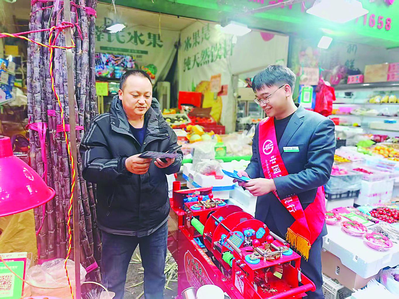 日前,农行光泽支行组织志愿者深入辖区菜市场,针对商户、买菜群众等不同群体开展防范和打击非法金融活动主题宣讲。 (黄陆欣 摄)