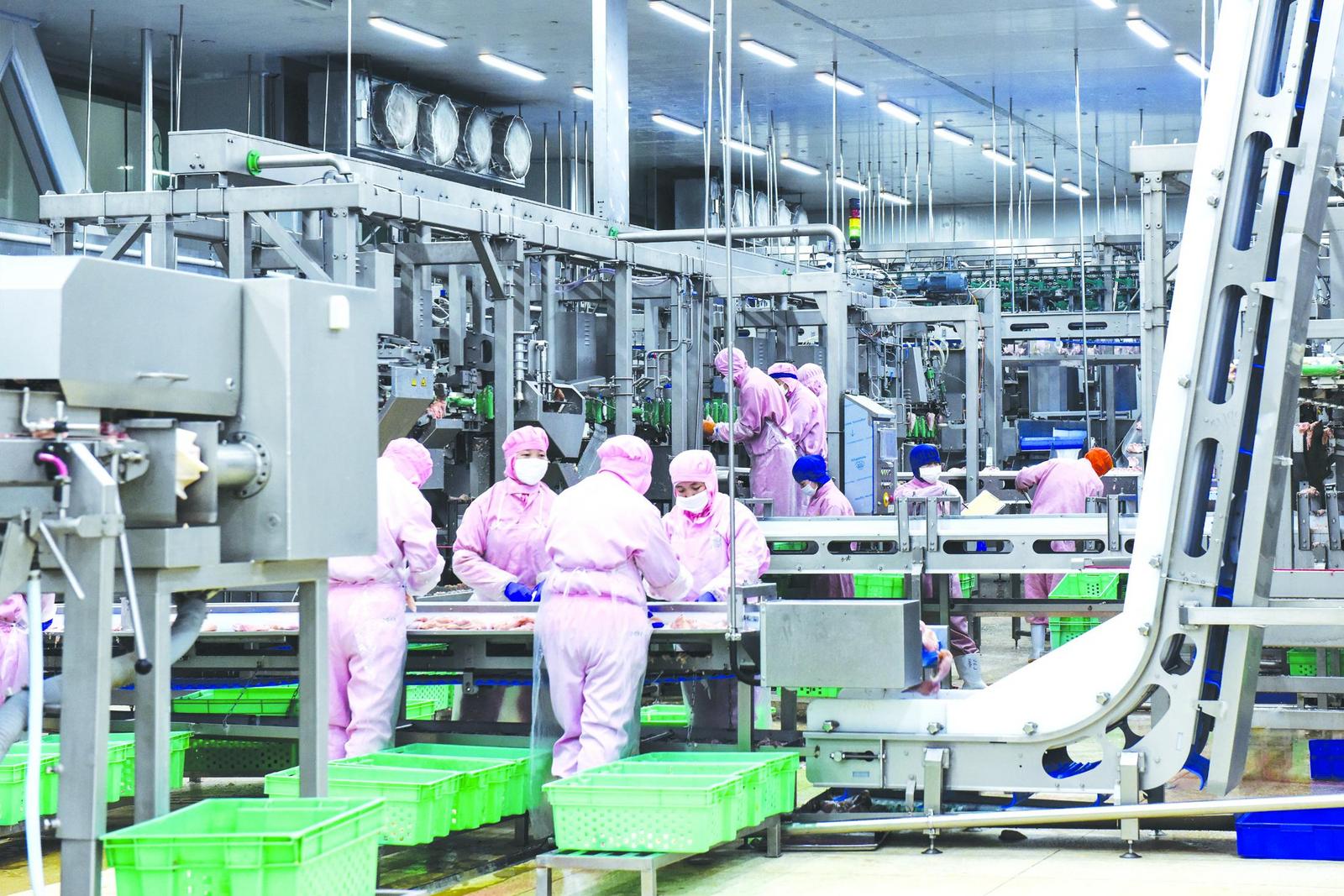 光泽是国家级生态县、国家生态文明建设示范区,荣获全国唯一“中国生态食品名城”。当地以优良生态环境支撑绿色产业链高质量发展,推动白羽肉鸡产业入选全国优势特色产业集群。图为圣农智能化肉鸡加工厂。 (资料图片)