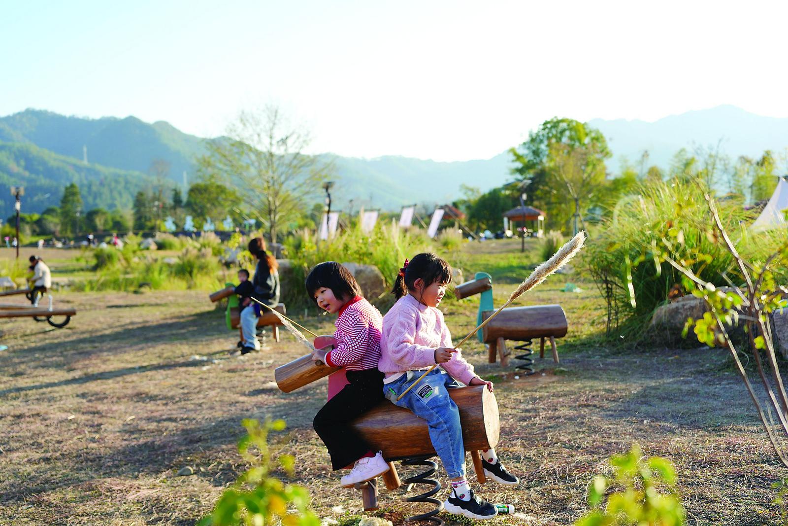 清晨或午后,从市区崇阳驿站租一辆自行车出发,沿着平坦的漫游道骑行,清风拂面,溪水潺潺。在游龙公园开阔的草坪上,帐篷和野餐垫散落其间,孩子们奔跑放风筝,大人或闲聊或静坐。市民林女士正带着家人享受周末,“抬脚就能到,环境好又方便。孩子能撒欢游戏,我们能真正放松一会儿。”骑行、野餐、飞盘、游戏……这里充满了轻松的欢声笑语。