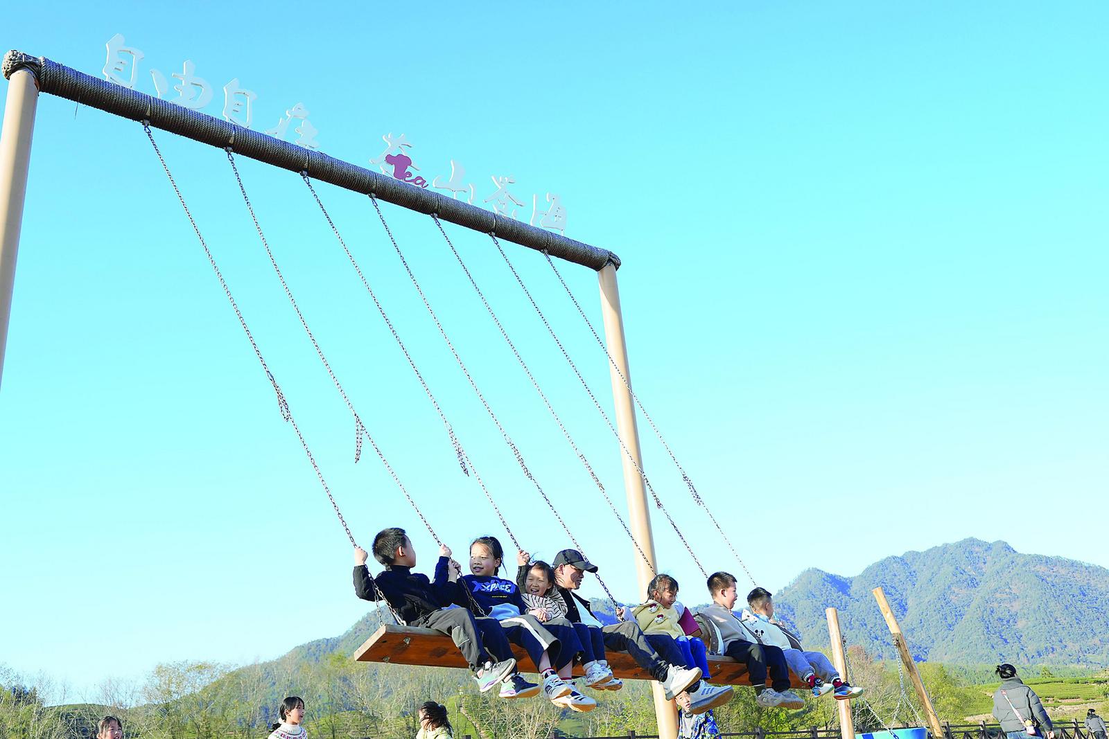营地一角的茶娃乐园区,传来孩子们的欢笑声,专门的儿童游乐区让小家伙们自在奔跑。家长们则得以偷闲,在附近的草坪垫子上,或坐或卧,手边一杯热茶,望着不远处的孩子与山景,享受片刻松弛。