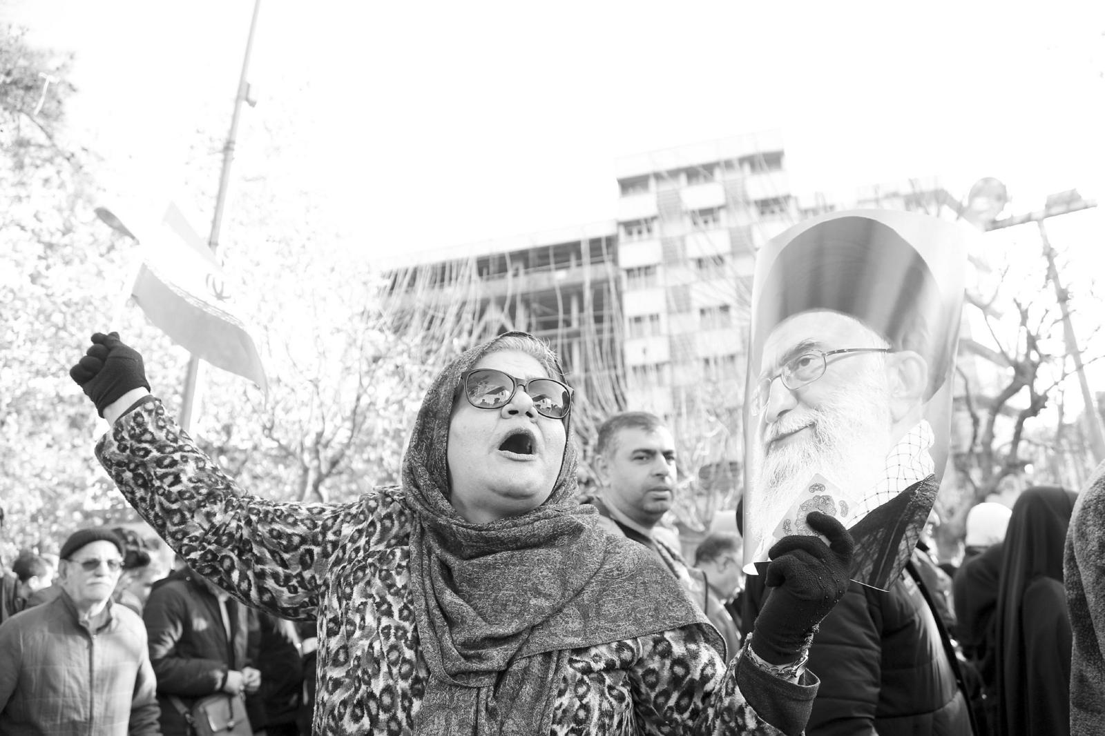 1月12日,在伊朗首都德黑兰,人们参加集会。