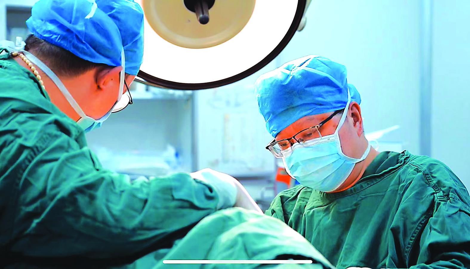 朱智宇(右)与科室人员一同为患者进行手术