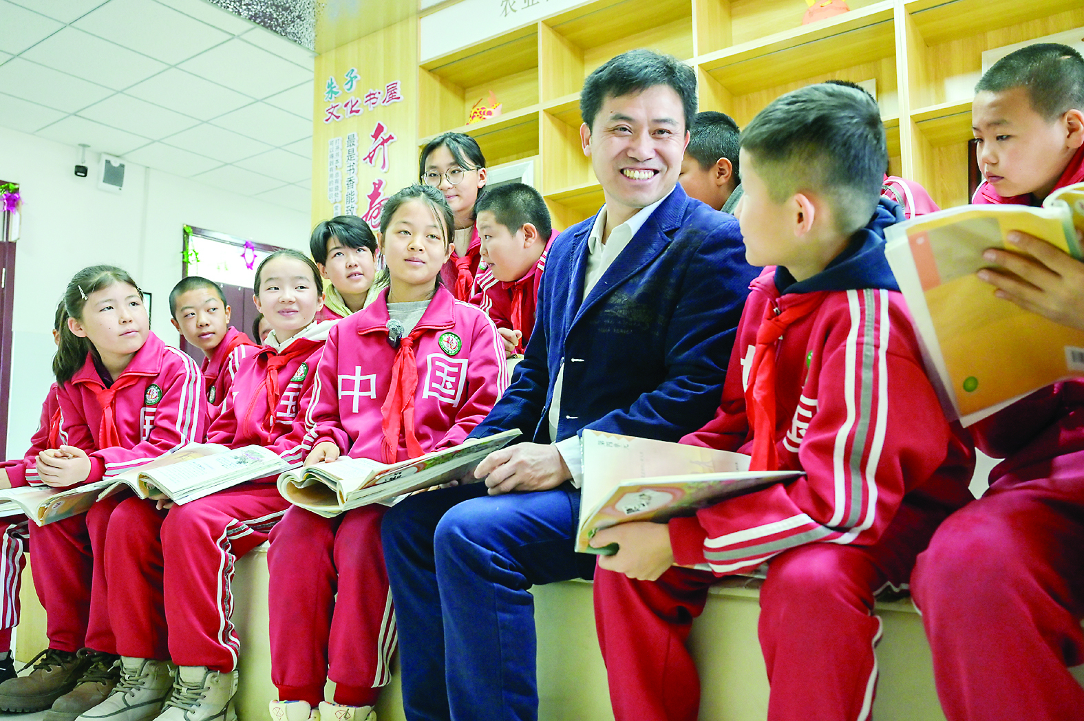 在木垒县新户中心学校朱子文化书屋,援疆教师刘政华正与学生共读朱子诗词。