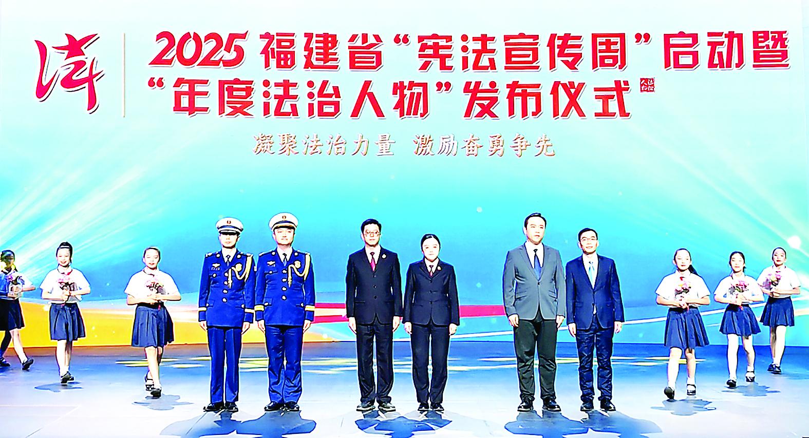 2025年12月4日,福建省“宪法宣传周”启动暨“年度法治人物”发布仪式在福州举行,南平市检察院第五检察部继荣获全国一等功后,再获2025年福建省“年度法治人物”(集体)。