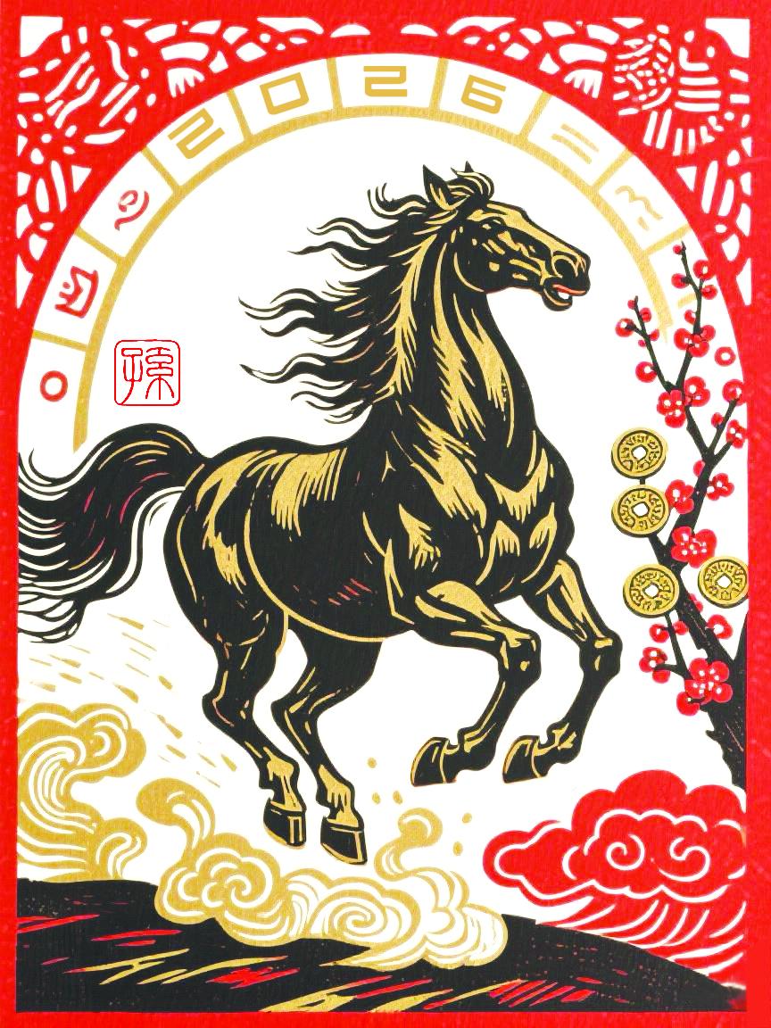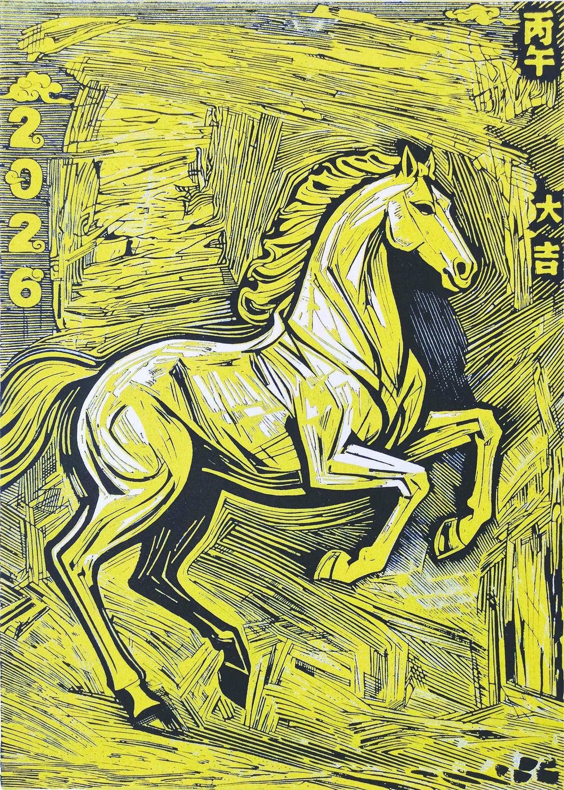 骏马迎春至,新风入户来。丙午马年,本报特邀闽北版画爱好者以“福马”为主题创作版画作品。这些作品形式多样,构思巧妙,具有浓郁的时代气息与艺术感染力,从不同侧面生动展现新春的气象、传递真挚的祝福。本报选登部分佳作,以飨读者。