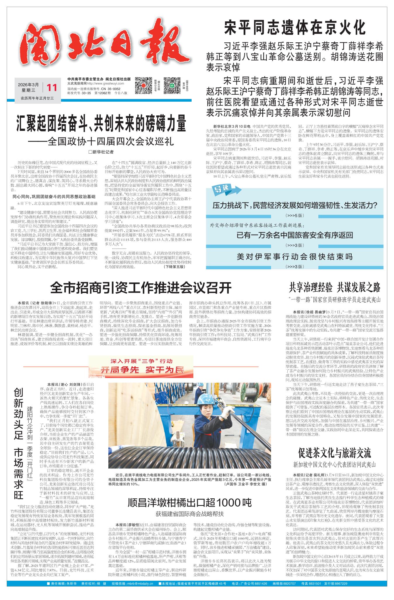 林建强调,要进一步健全招商机制,优化“一办四块”招商体系,建立招商线索统一流转、重大项目推进、成效评价等机制,树立以招商实绩论英雄的鲜明导向。要进一步聚焦招商重点,围绕重点产业链、环带“两线八片”重点片区、农村新型经营主体、城市更新、“武夷百村”等重点领域,坚持“内培”“外引”两手抓,培育更多新增长点、支撑点。要进一步创新招商模式,持续深化专业招商,扩大会议招商,加力乡贤招商,做优生态招商,探索基金招商,拓展场景招商,创新运用“吃茶话招商”等形式,提升招商成效。要进一步强化招商保障,持续优化营商环境,统筹用地、资金、科创等要素资源,为项目落地提供全方位保障,让招商更有温度。要进一步压实招商责任,发挥市招商办牵头抓总作用,统筹各县(市、区)、市属园区、市直部门和各重点产业链专班、重点片区指挥部、驻外联络处等招商力量,加快构建协同高效的招商责任链条。