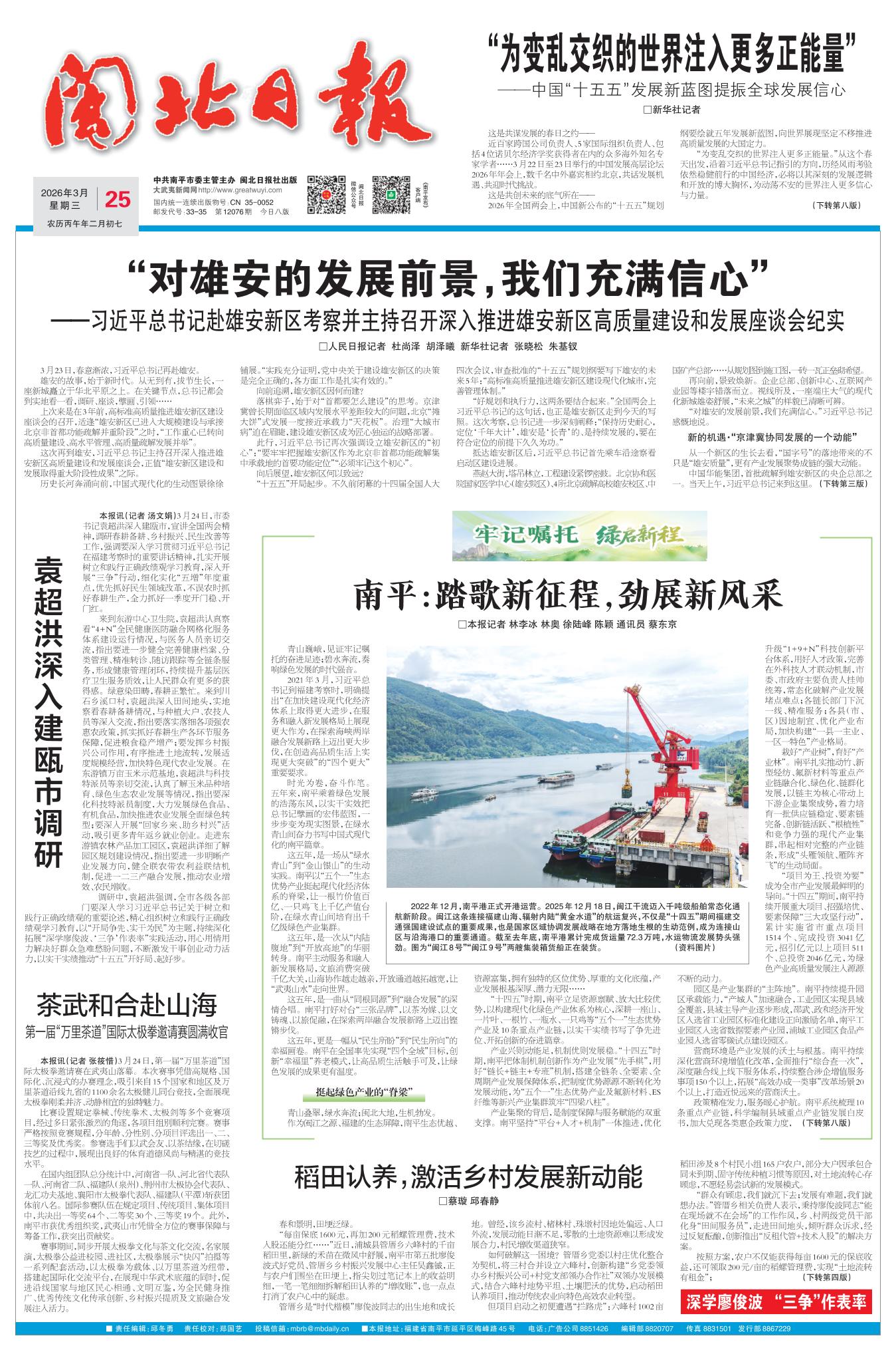 本报讯(记者 汤文娟)3月24日,市委书记袁超洪深入建瓯市,宣讲全国两会精神,调研春耕备耕、乡村振兴、民生改善等工作,强调要深入学习贯彻习近平总书记在福建考察时的重要讲话精神,扎实开展树立和践行正确政绩观学习教育,深入开展“三争”行动,细化实化“五增”年度重点,优先抓好民生领域改革,不误农时抓好春耕生产,全力抓好一季度开门稳、开门红。