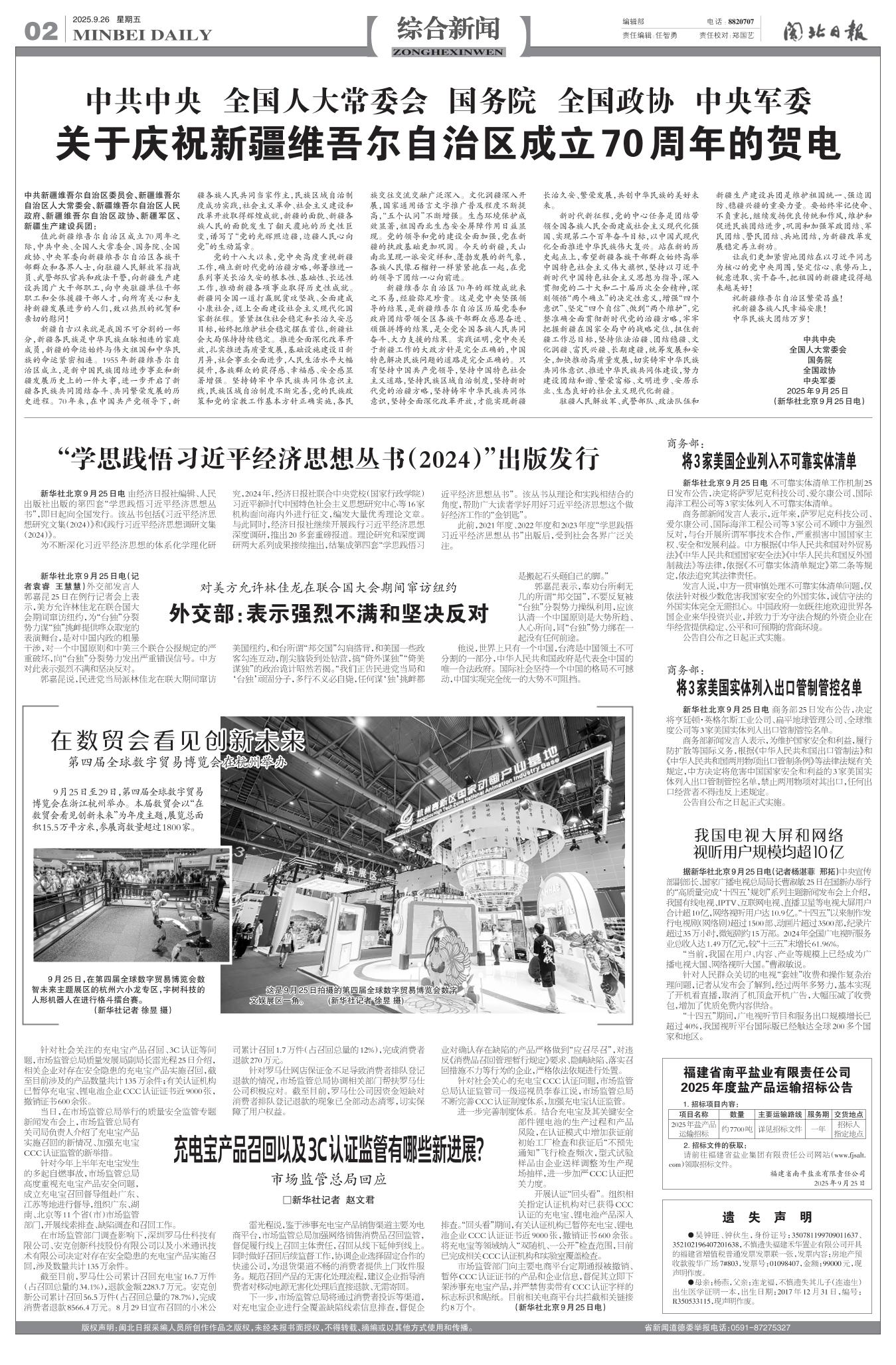 关于庆祝新疆维吾尔自治区成立70周年的贺电