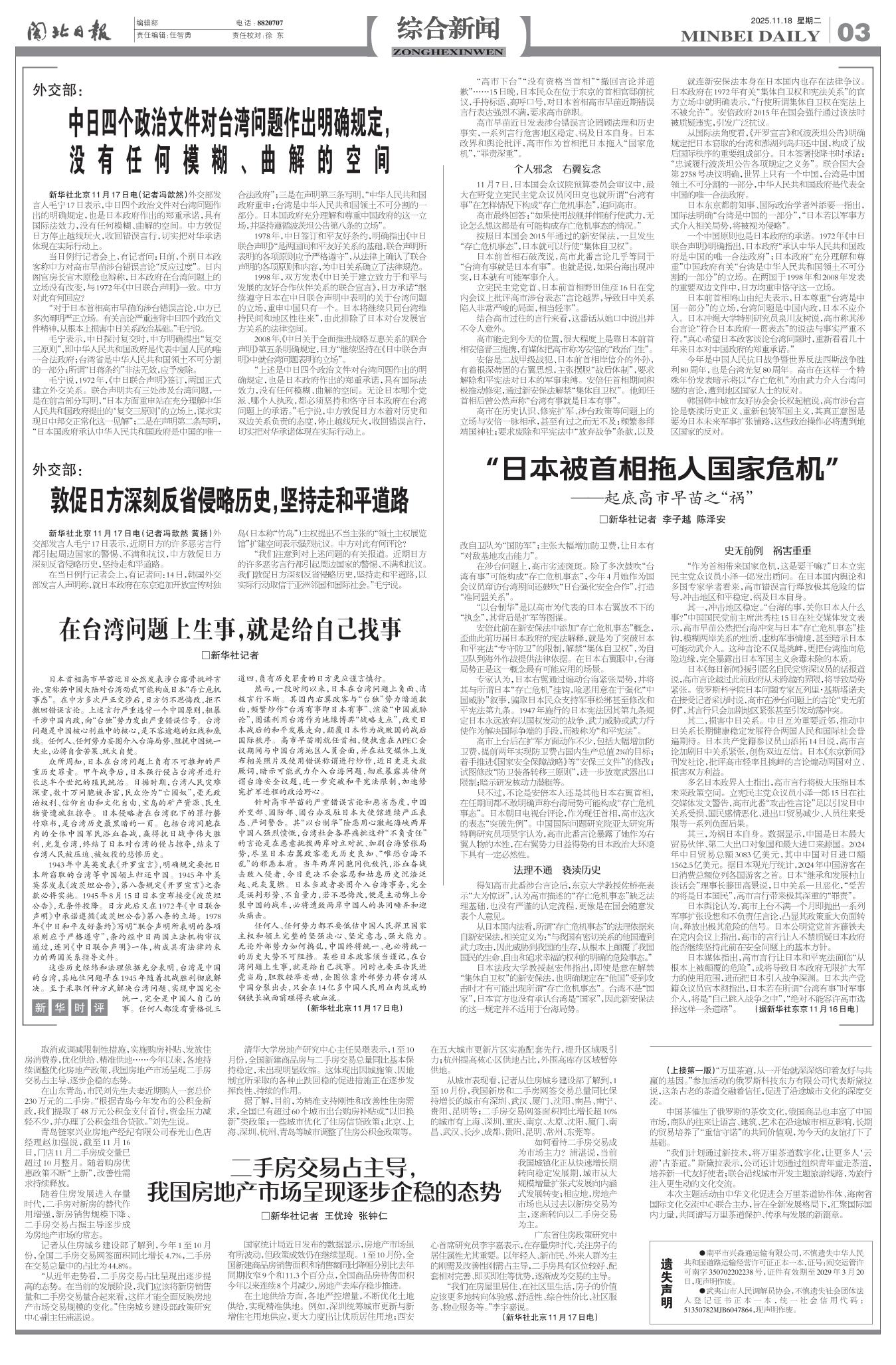 中日四个政治文件对台湾问题作出明确规定,没有任何模糊、曲解的空间