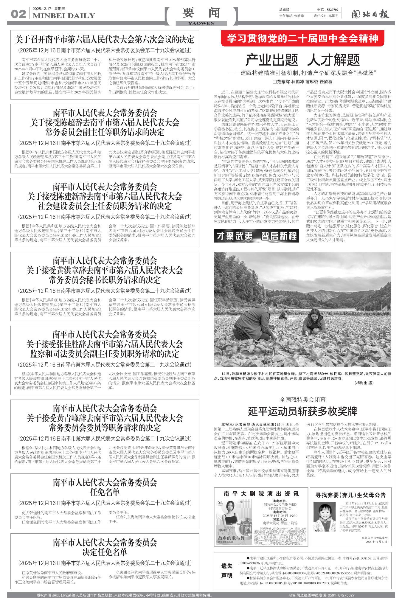 南平市人民代表大会常务委员会 决定任免名单