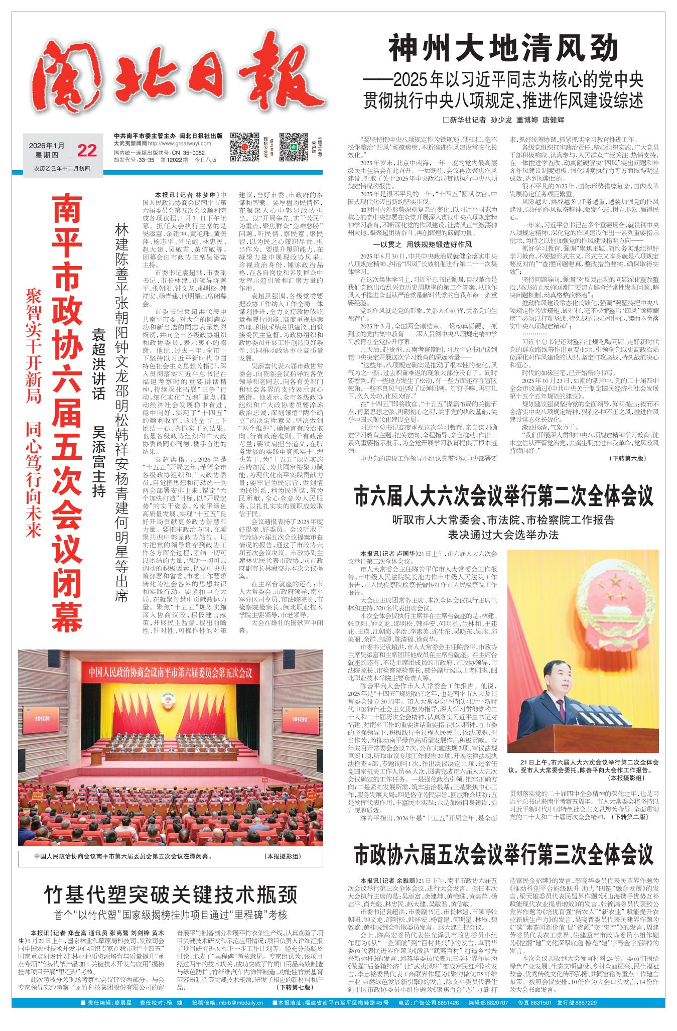 南平市政协六届五次会议闭幕