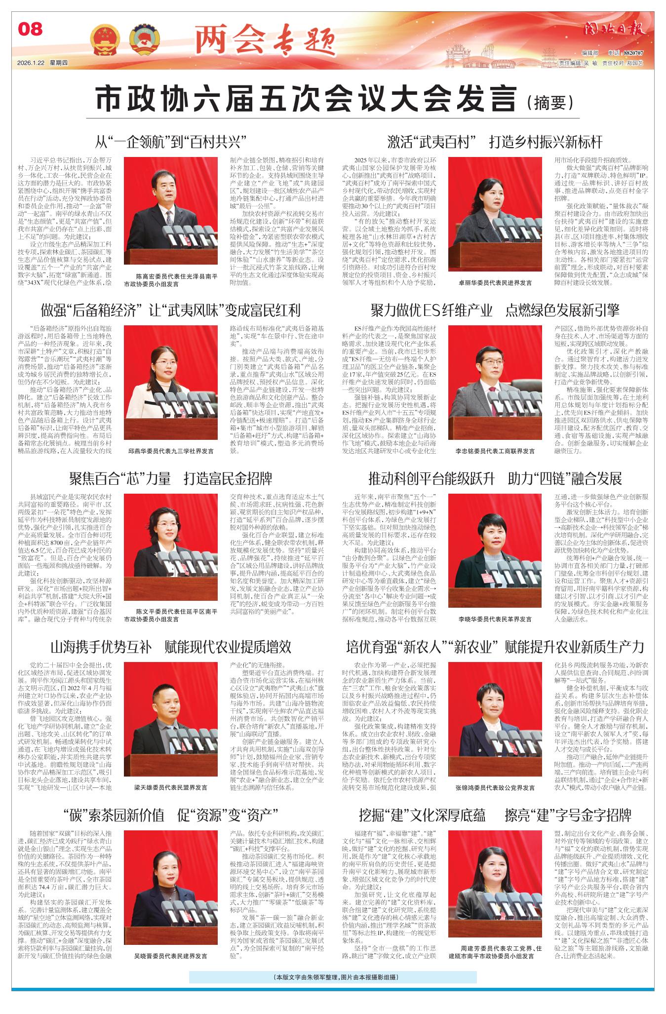 市政协六届五次会议大会发言(摘要)