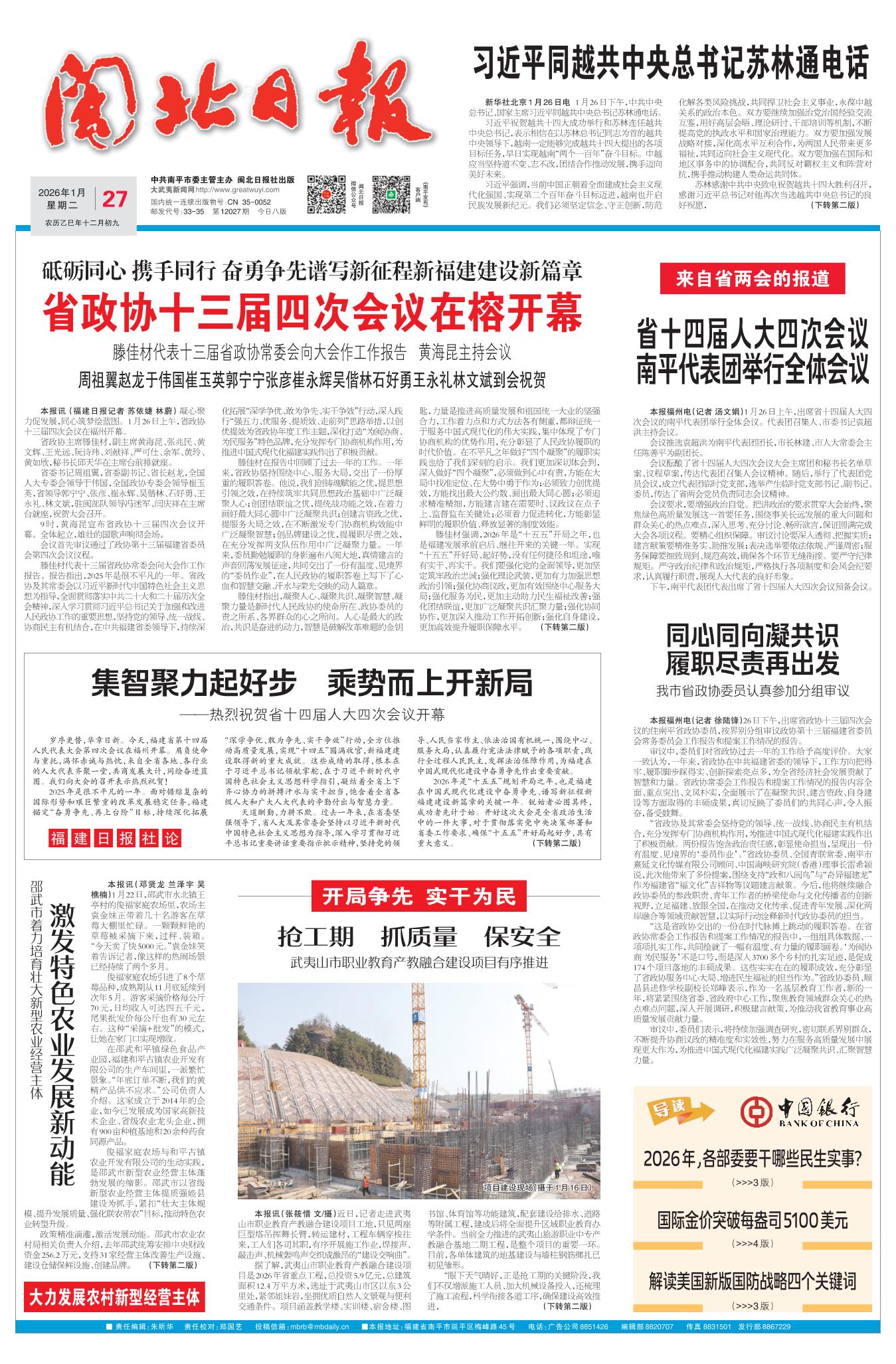 省政协十三届四次会议在榕开幕