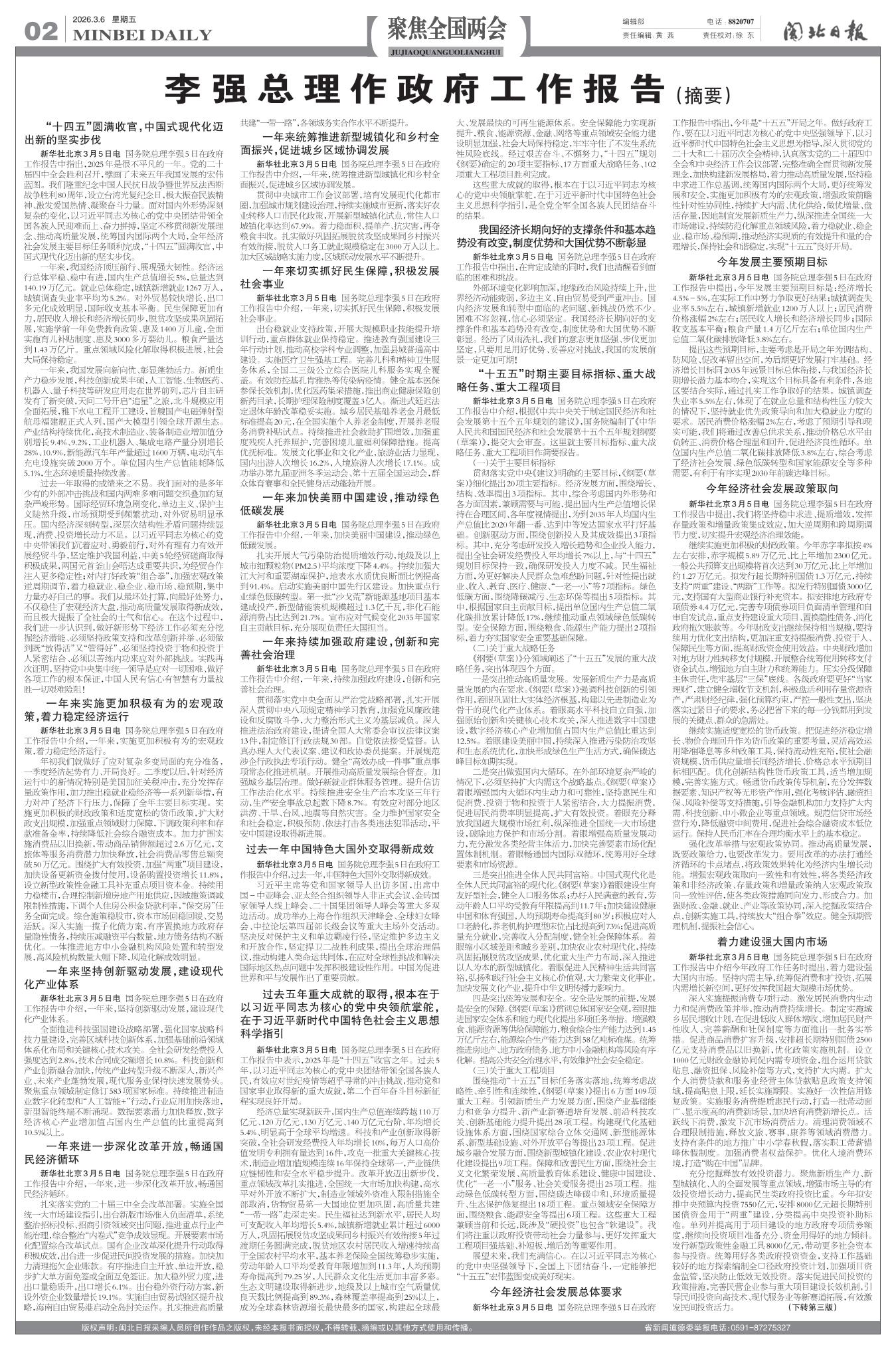 李强总理作政府工作报告(摘要)