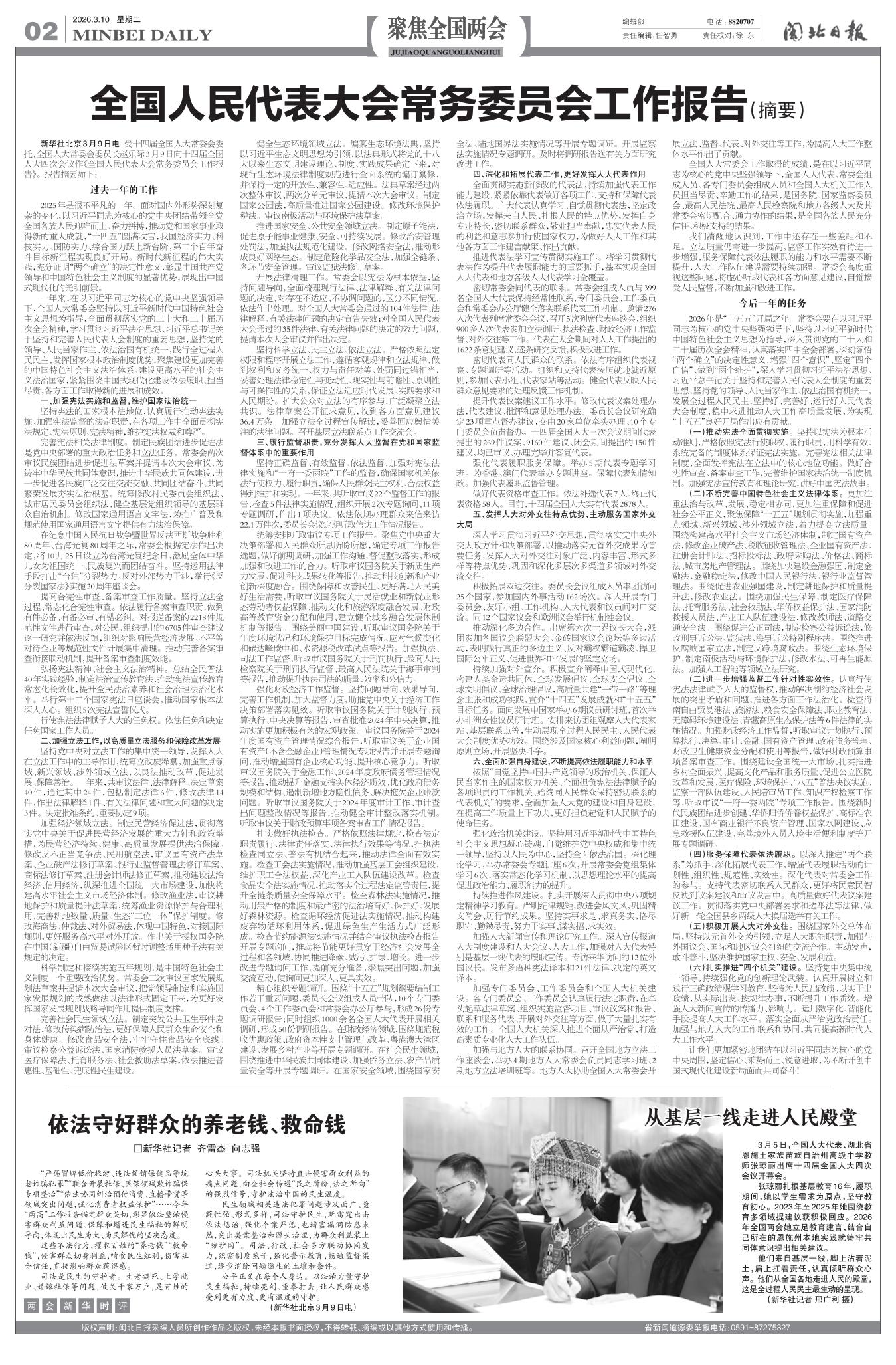 全国人民代表大会常务委员会工作报告(摘要)