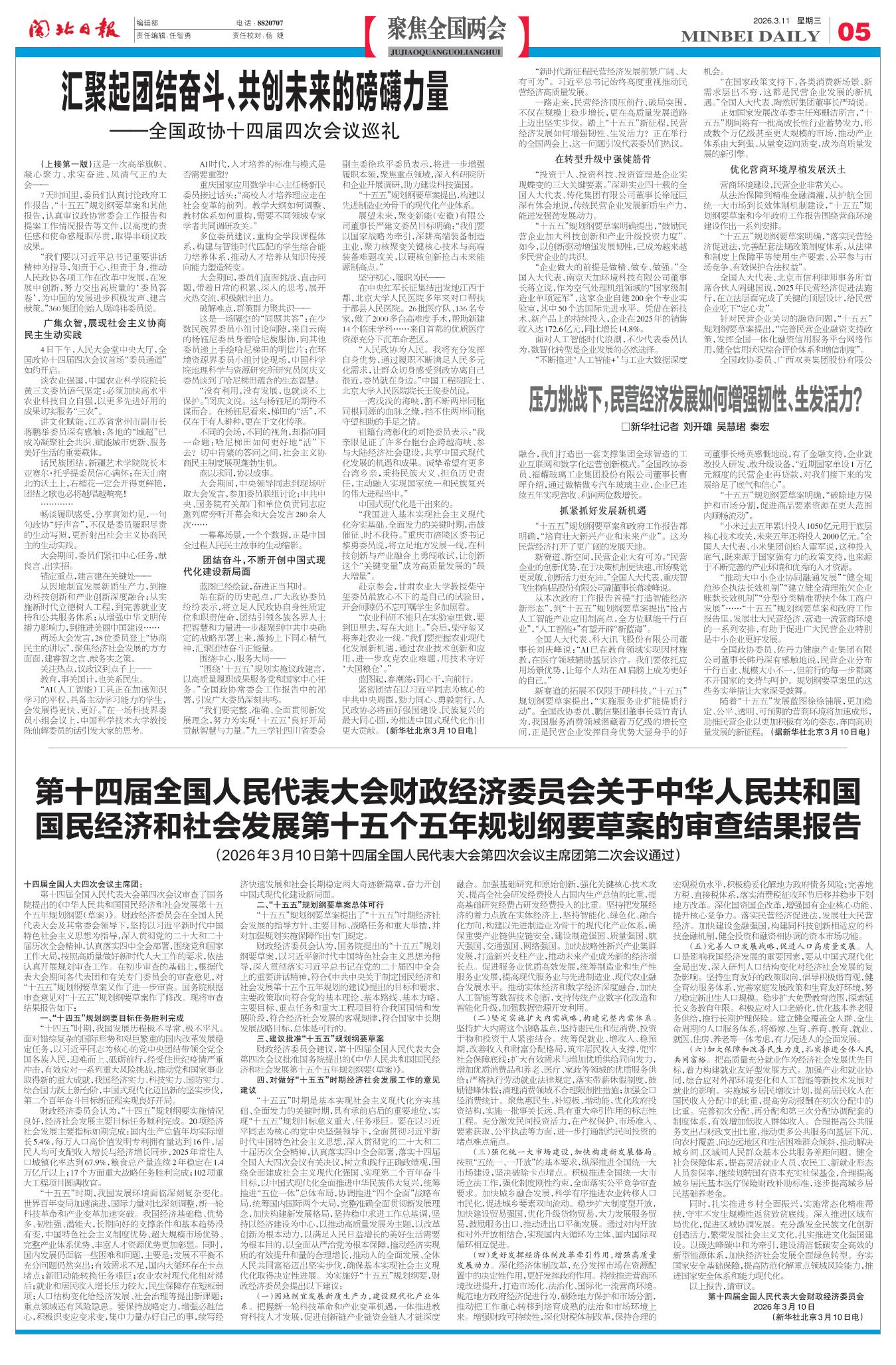 第十四届全国人民代表大会财政经济委员会关于中华人民共和国国民经济和社会发展第十五个五年规划纲要草案的审查结果报告