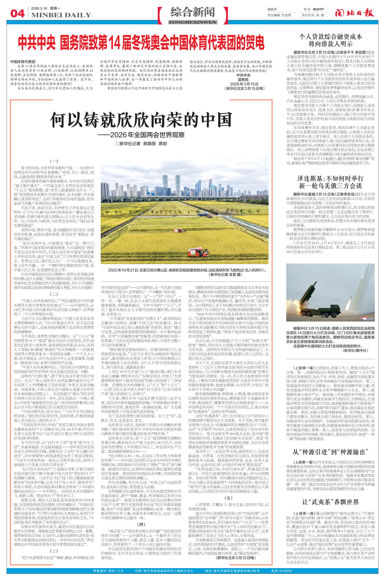 中共中央 国务院致第14届冬残奥会中国体育代表团的贺电