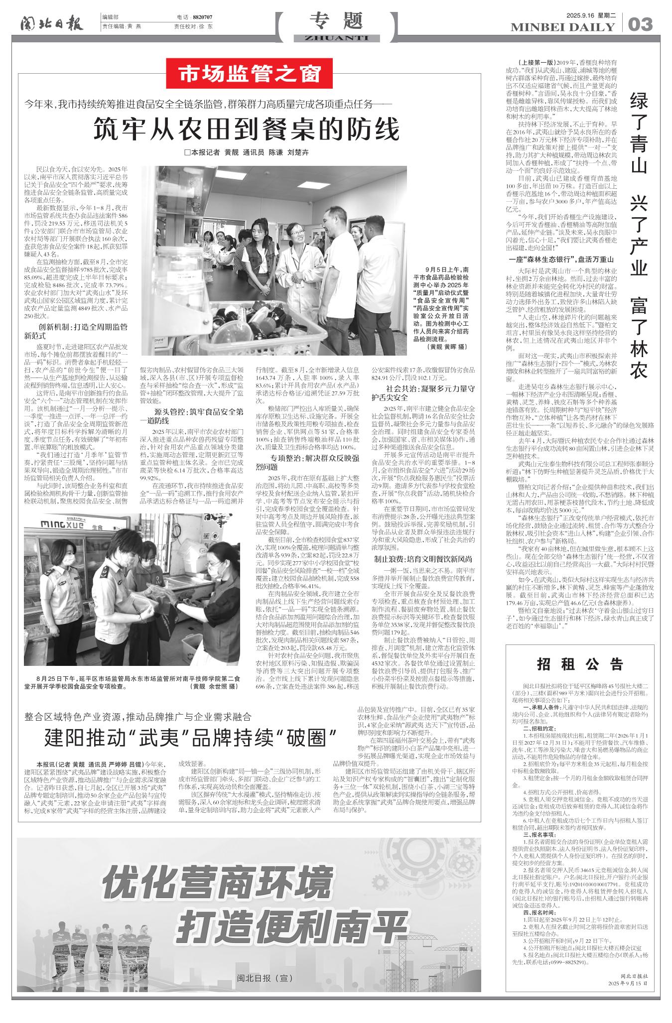 建阳区市场监管局还组建了由机关骨干、辖区所站及知识产权专家构成的“智囊团”,推出“定制化服务+三位一体”双轮机制,围绕小白茶、小湖三宝等特色产业,提供从政策解读到实操指导的全链条服务,帮助企业系统掌握“武夷”品牌合规使用要点,增强品牌布局与保护。