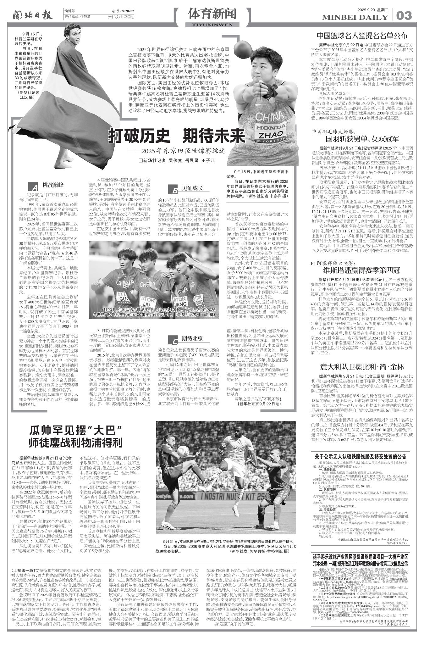 国际方面,美国田径的优势地位依旧稳固,本届世锦赛共获16枚金牌,金牌数相比上届增加了4枚;瑞典撑杆跳高名将杜普兰蒂斯职业生涯第14次刷新世界纪录,成为赛场上最亮眼的明星;坦桑尼亚、乌拉圭、萨摩亚等代表团在奖牌榜上的历史性突破,也生动诠释了田径运动追求卓越、挑战极限的独特魅力。