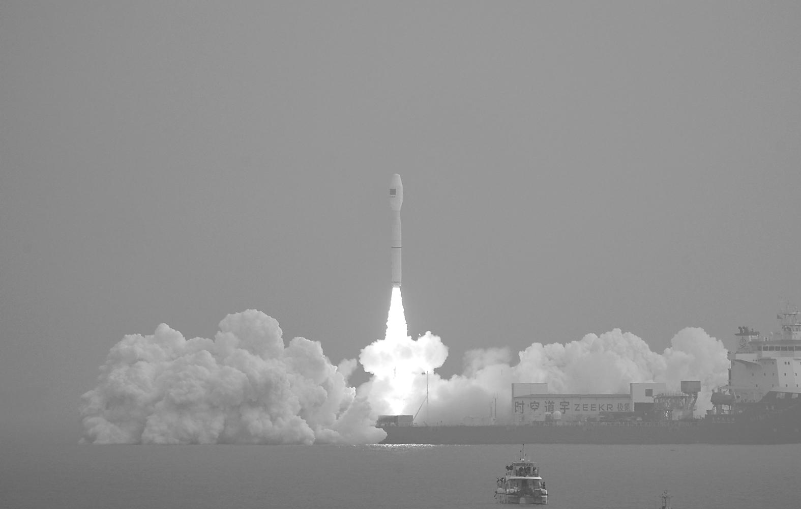 9月24日15时56分,我国太原卫星发射中心在山东日照附近海域使用捷龙三号运载火箭,成功将吉利星座06组卫星发射升空,卫星顺利进入预定轨道,发射任务获得圆满成功。 (新华社发 安迪 摄)