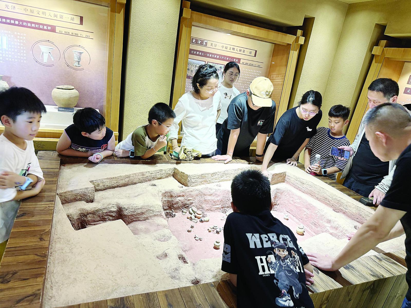 10月2日至4日,南京三点钟研学团队的30位孩子来到光泽县,开展主题研学活动。孩子们来到池湖商周遗址、苏维埃政府旧址、圣农博物馆、光泽红茶展示馆,以及玲珑溪谷、杉关生态文化园、神山景区等地,触摸中华文明的强劲脉搏,了解现代科技农业的创新成就,感受诗意栖居的美好。图为孩子们在参观池湖商周遗址模型。