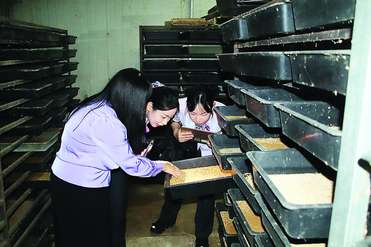 农行浦城支行客户经理来到企业了解黄粉虫养殖情况(占晓璇 摄)