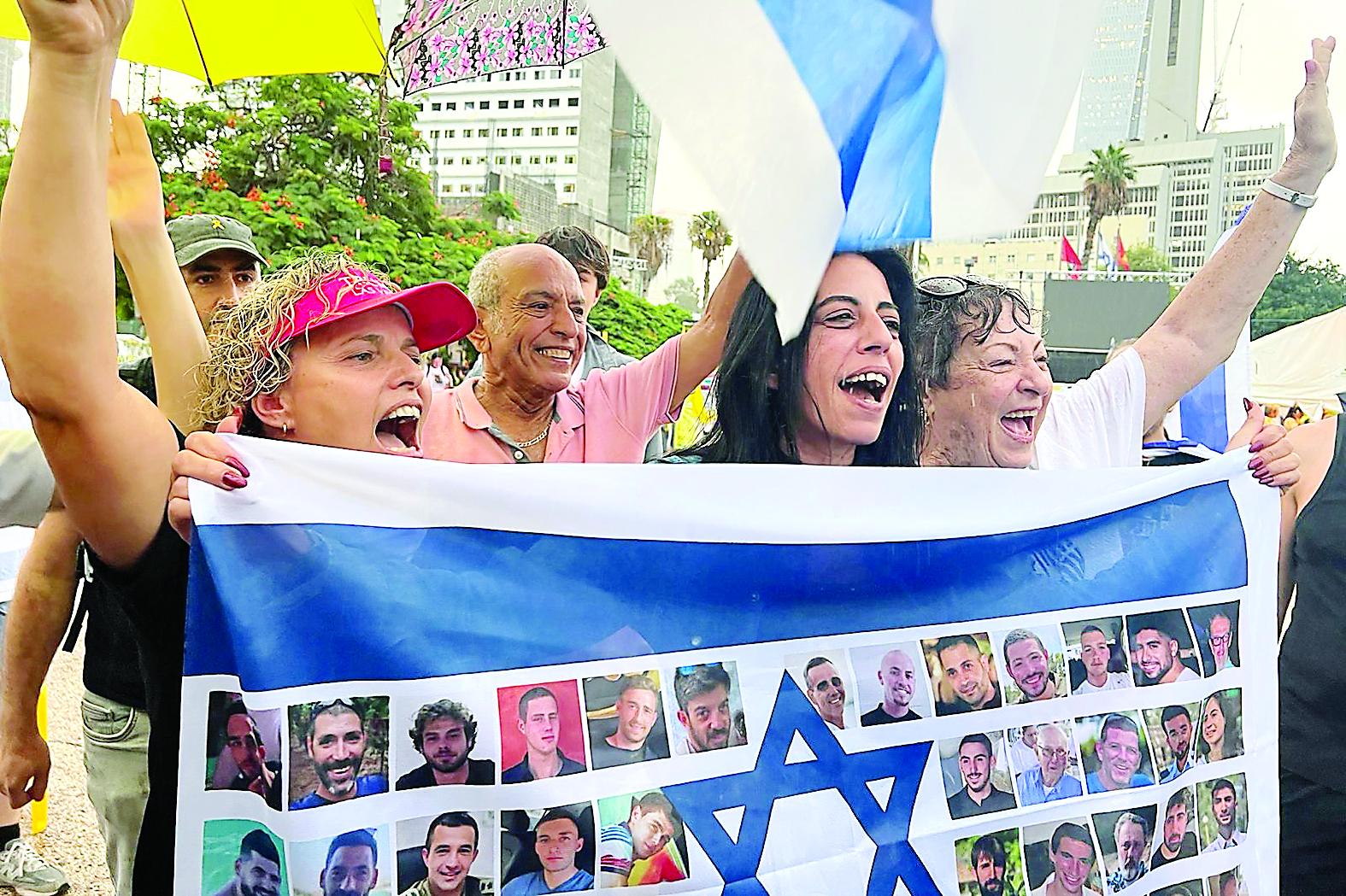 10月9日,以色列被扣押人员亲友在特拉维夫庆祝达成停火协议。
