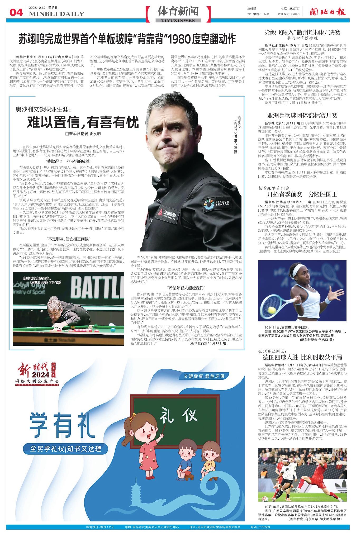 新华社北京10月11日电 国际乒联消息,2025年亚洲乒乓球团体锦标赛11日在印度布巴内什瓦尔开赛。首个比赛日没有国乒选手参赛。
