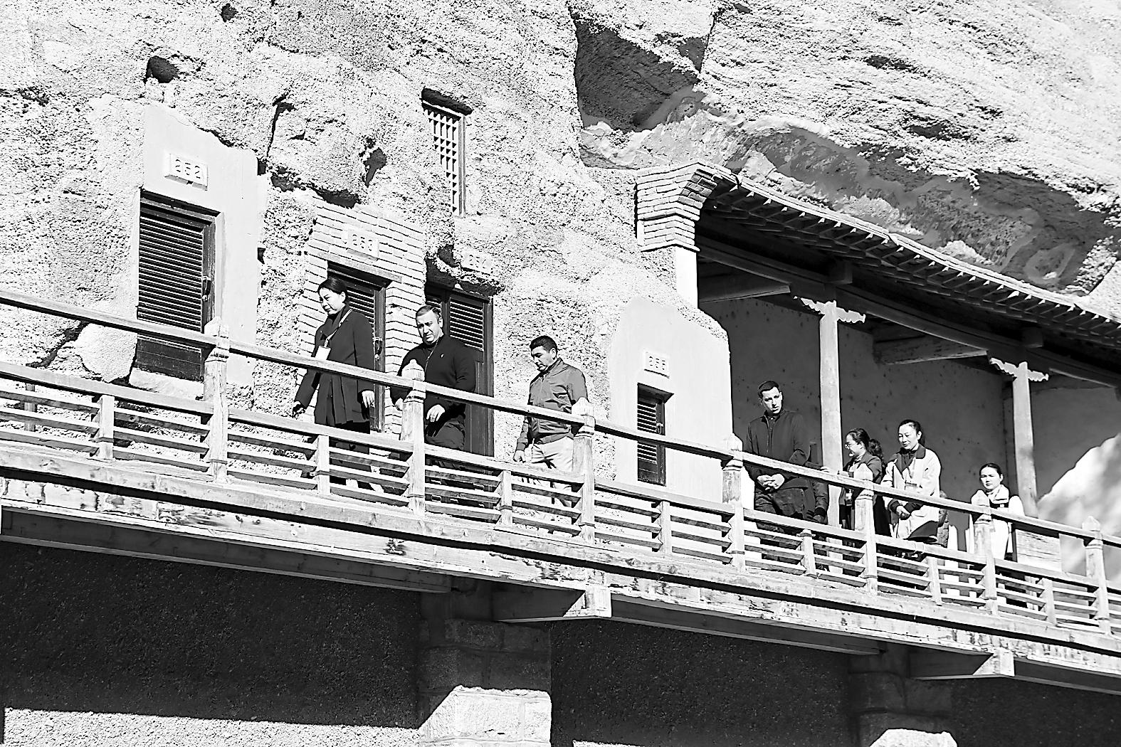 10月12日,外国嘉宾在敦煌莫高窟参观。