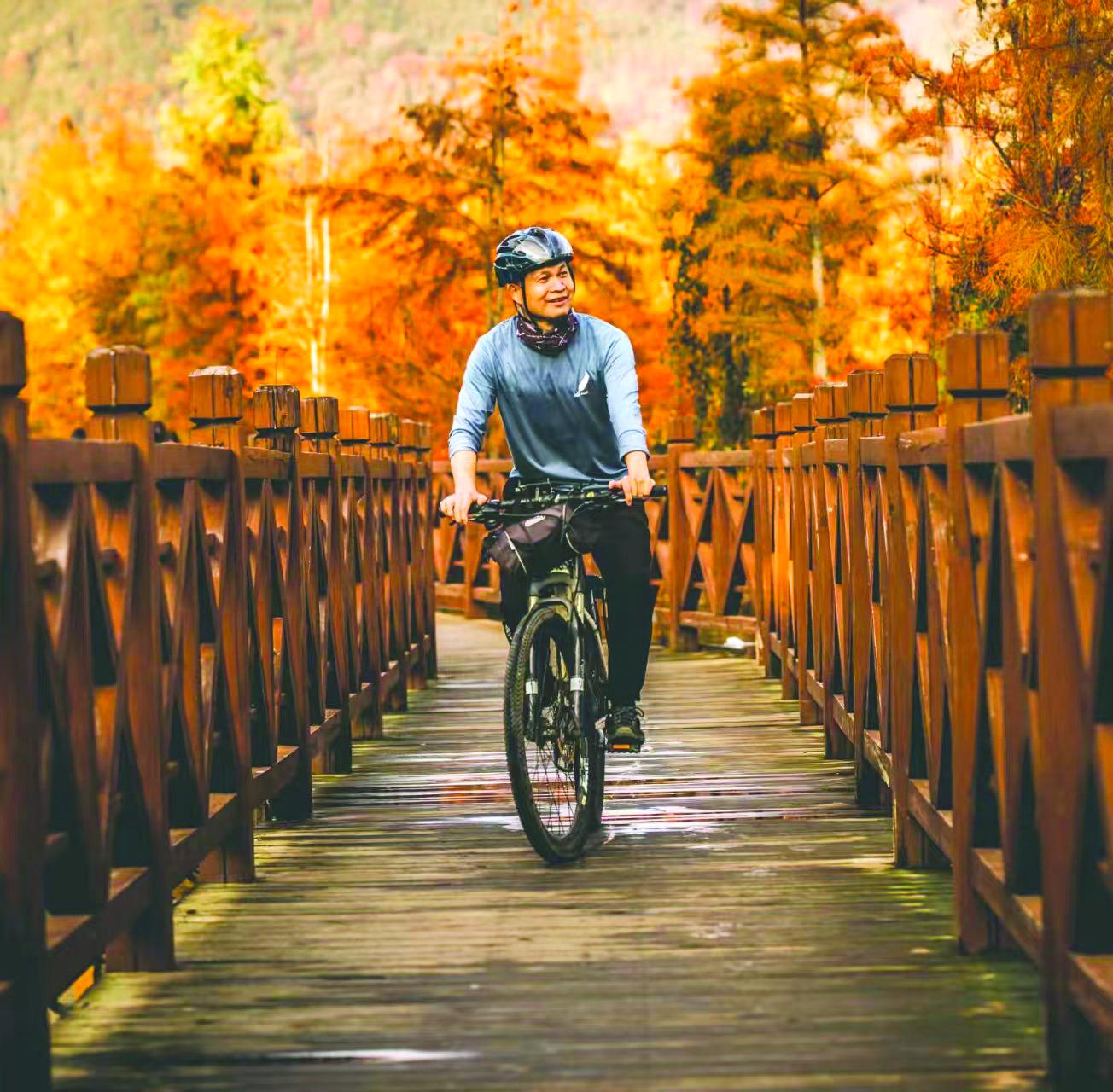 深秋的风让暑气渐消,也悄然为延平乡村染上一抹微黄。田野间,渐渐弥漫起丰收的气息。穿行在秋风里,一身专业骑行装备的胡敬勇显得神采奕奕。