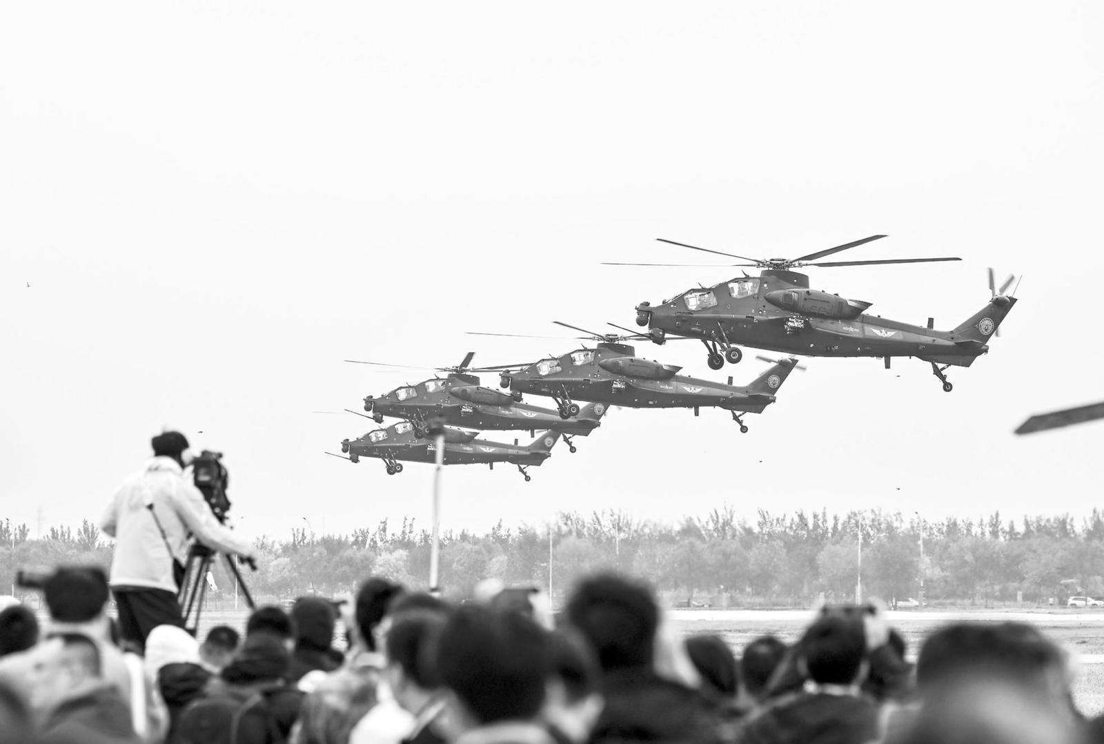 10月16日,在第七届中国天津国际直升机博览会开幕式上,陆军“风雷”飞行表演队进行飞行表演。当日,第七届中国天津国际直升机博览会在天津空港经济区开幕,陆军“风雷”飞行表演队为观众带来特技飞行表演。