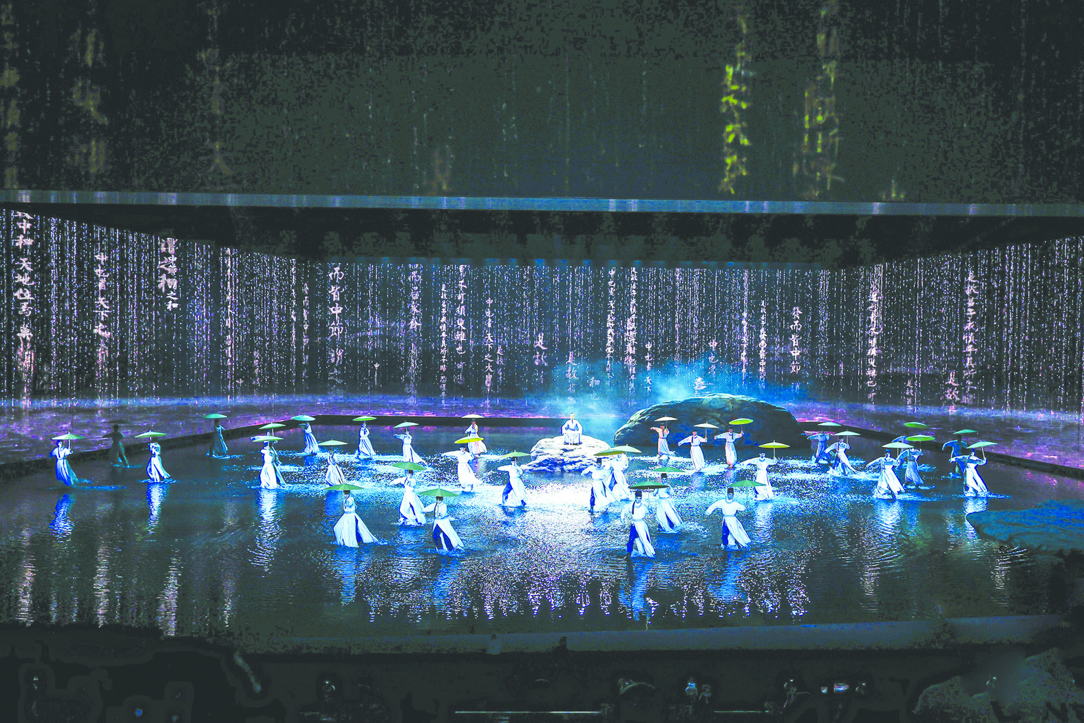 闽北的水,从来浸润着千年文脉的香。走进《月映武夷》剧场,环形水幕如宣纸般徐徐铺展,朱熹手书“月映万川”四字浮现,近一万立方米清水在光影流转中,熠熠生辉。