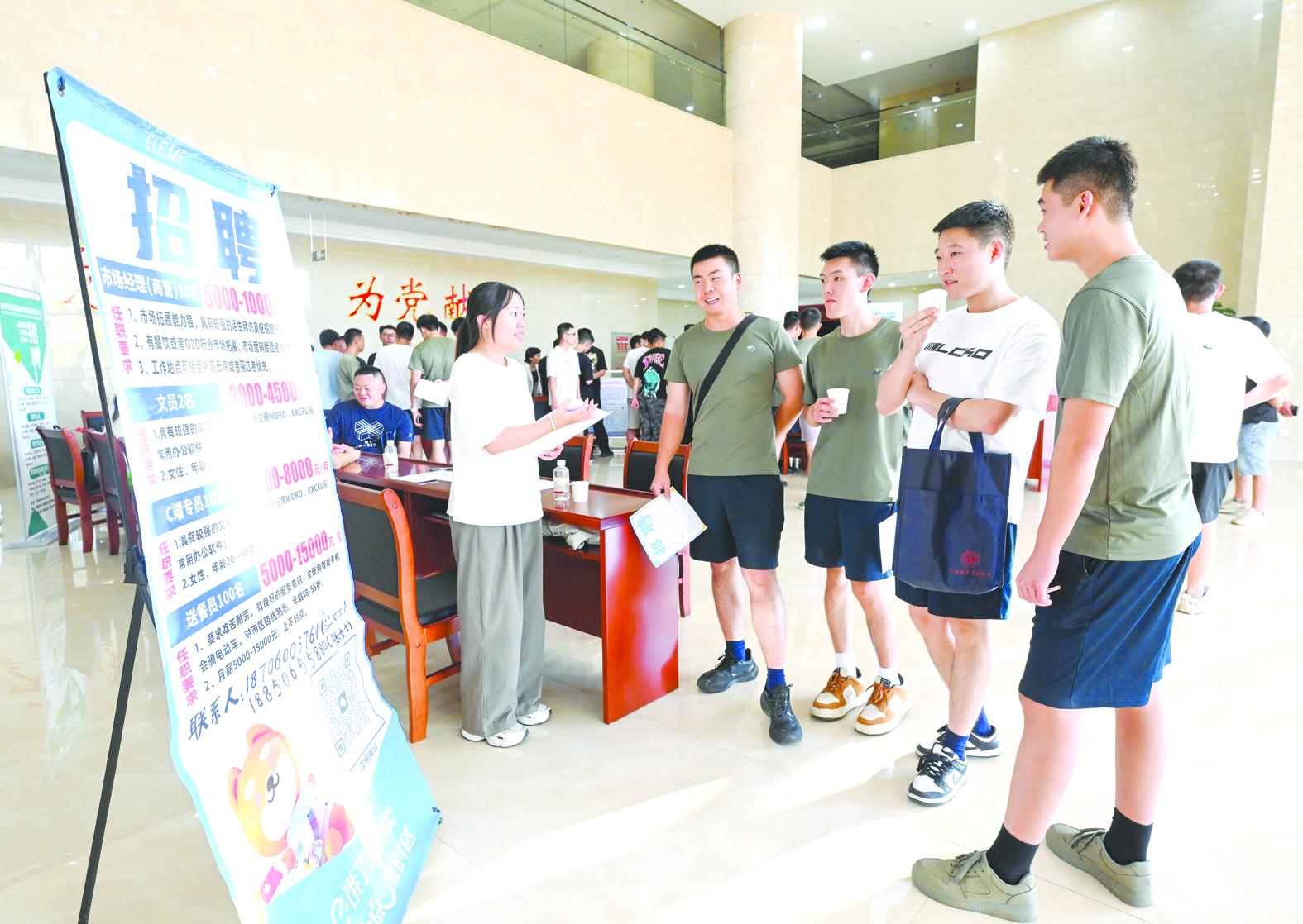 为拓宽企业吸纳高素质劳动力的渠道,11日,由福建省退役军人事务厅、南平市人力资源和社会保障局、市退役军人事务局主办的福建省2025年“百企千岗”巡回招聘系列活动南平市退役军人专场招聘会在武夷新区举办,共589个岗位供退役军人选择。图为招聘会活动现场。 (张行健 摄)