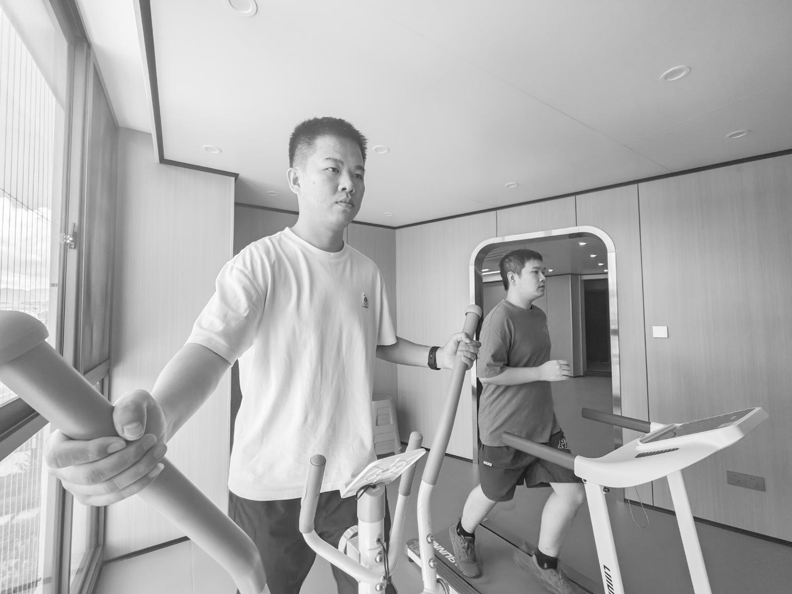入住人才公寓的职工在人才服务空间内健身