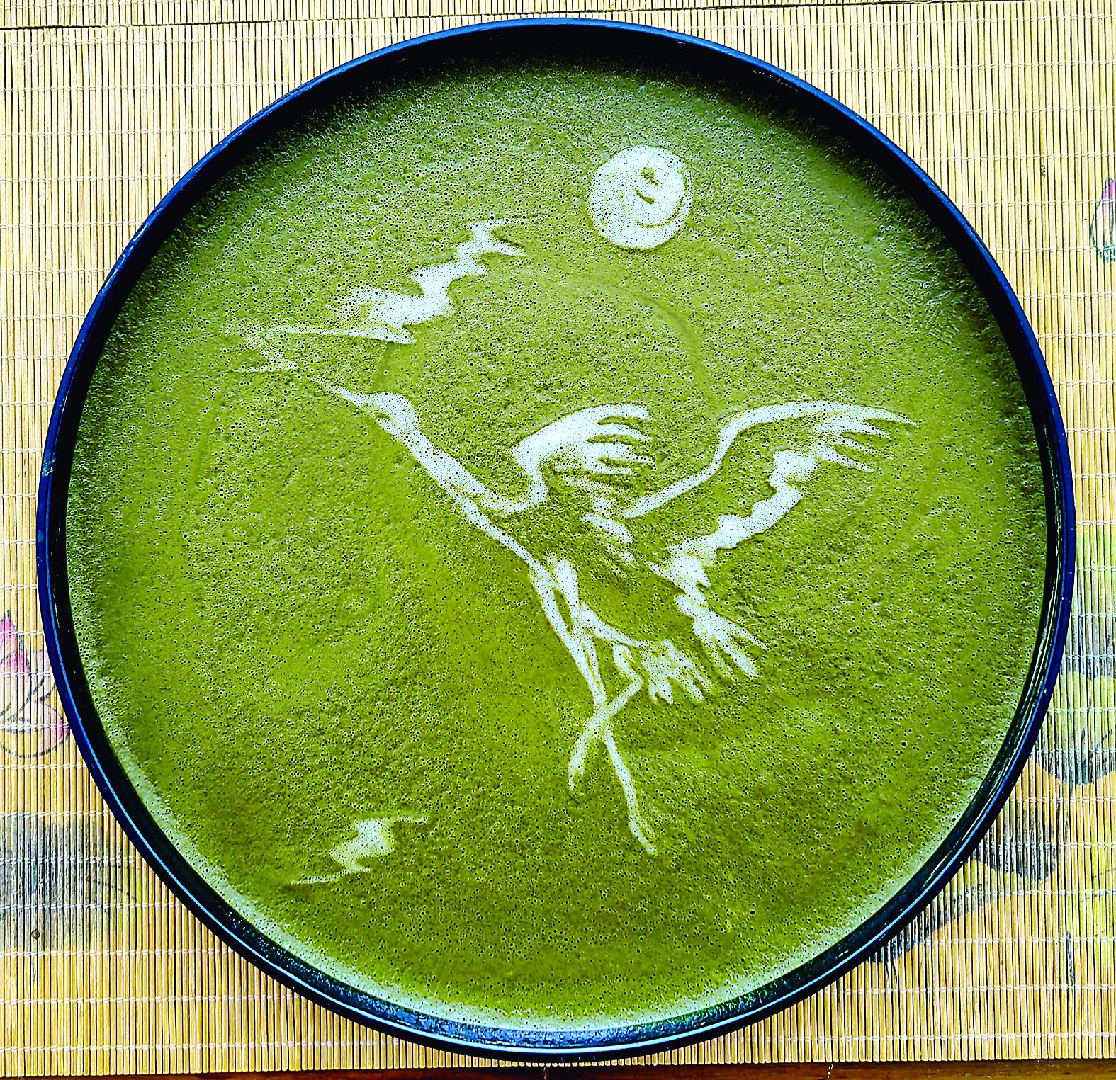 “要恢复茶百戏,首先得搞懂点茶。”1997年,章志峰第一次赴日本研修茶道。在日本,他发现当地保留的点茶法虽有中国宋代点茶的影子,但并无“用清水作画”的茶百戏技艺,更没有研膏茶。“这说明茶百戏是中国独有的技艺,恢复它的担子,只能我们自己扛。”