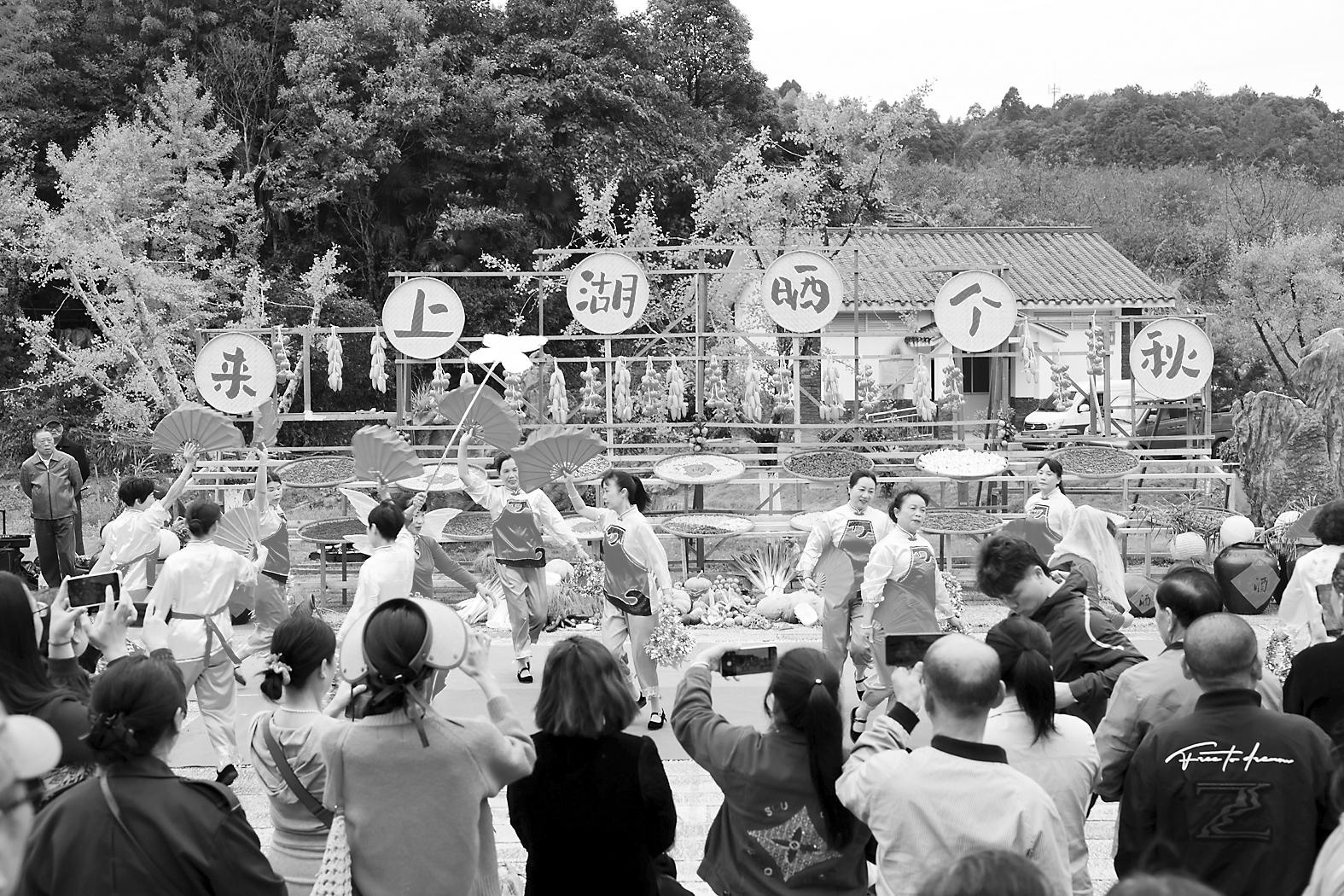 11月1日,顺昌县大干镇上湖村举办“金秋宝山 丰收上湖”晒秋节活动,当地村民将今年收获的稻谷、辣椒、玉米等农作物晾晒,形成一道道独特的风景线,吸引了许多游客前来体验晒秋、拍照打卡。图为晒秋节现场。(徐华山 摄)