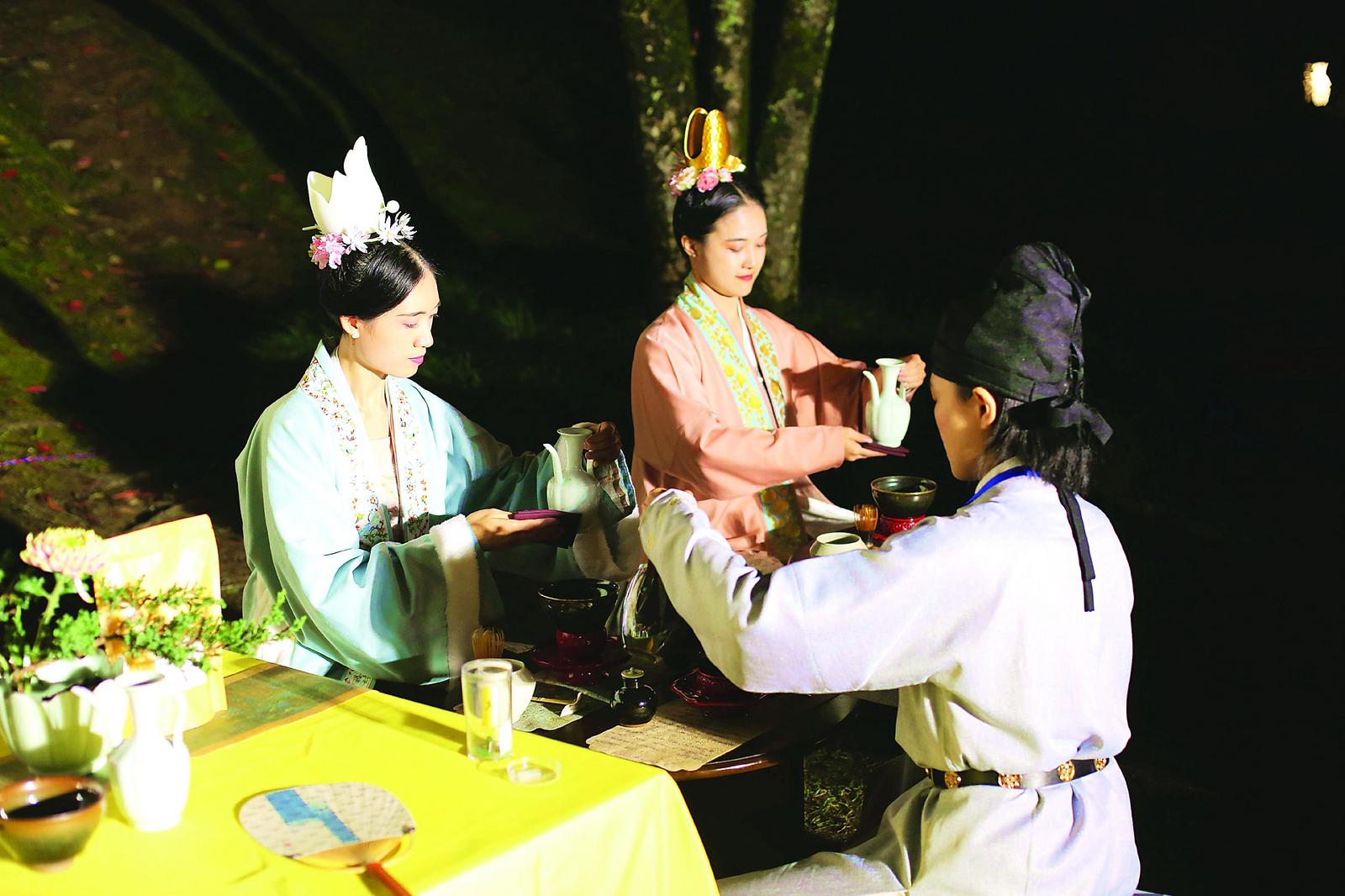武夷茶宴巧妙融合岩茶与闽北菜精华,以茶入馔。大红袍茶叶熏制醇香茶叶蛋,肉桂茶汤煨出鲜嫩河鲜。茶香去腻提鲜,赋予菜肴独特岩韵风骨。