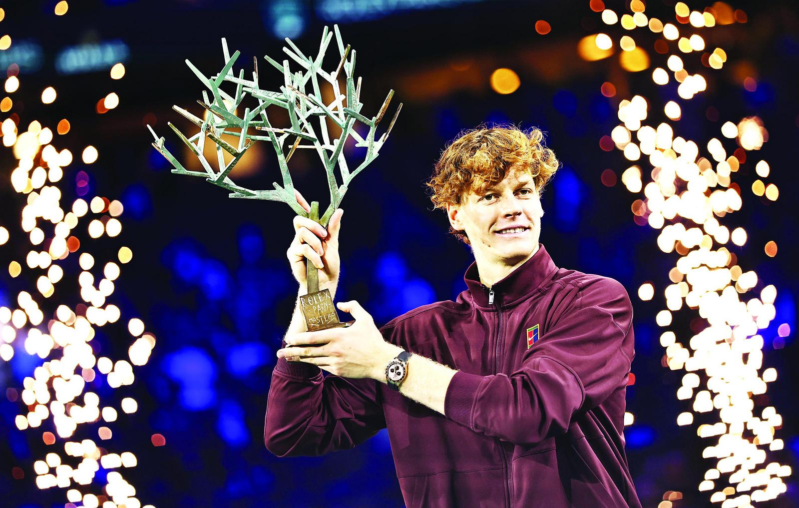 当日,在2025巴黎网球大师赛男单决赛中,意大利选手辛纳2比0战胜加拿大选手奥热-阿利亚西姆,夺得冠军。 (新华社记者 高静 摄)