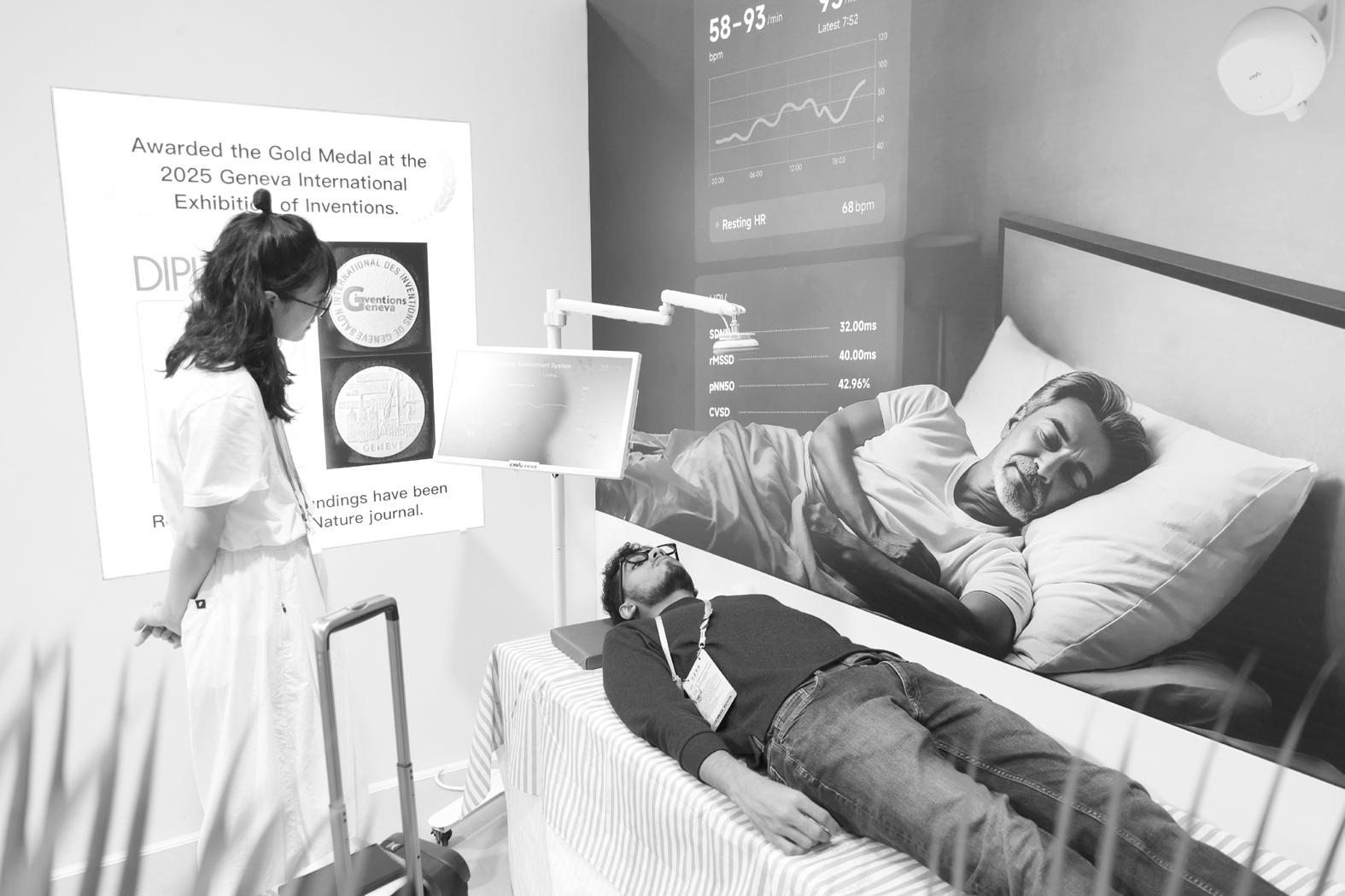 10月31日,客商在广交会智慧医疗专区体验一款非接触式心脏健康监测系统。