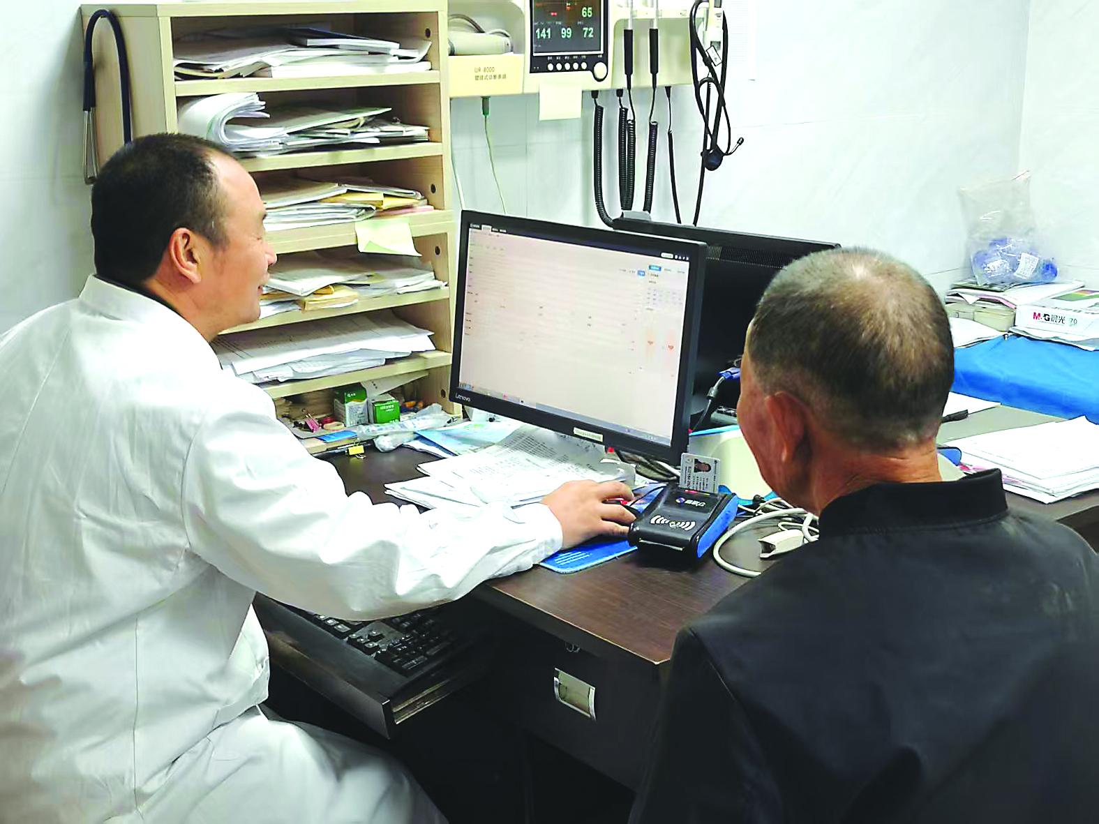 在郑墩镇卫生院,医生在AI辅助诊疗系统的辅助下,为患者进行科学化、规范化诊疗。